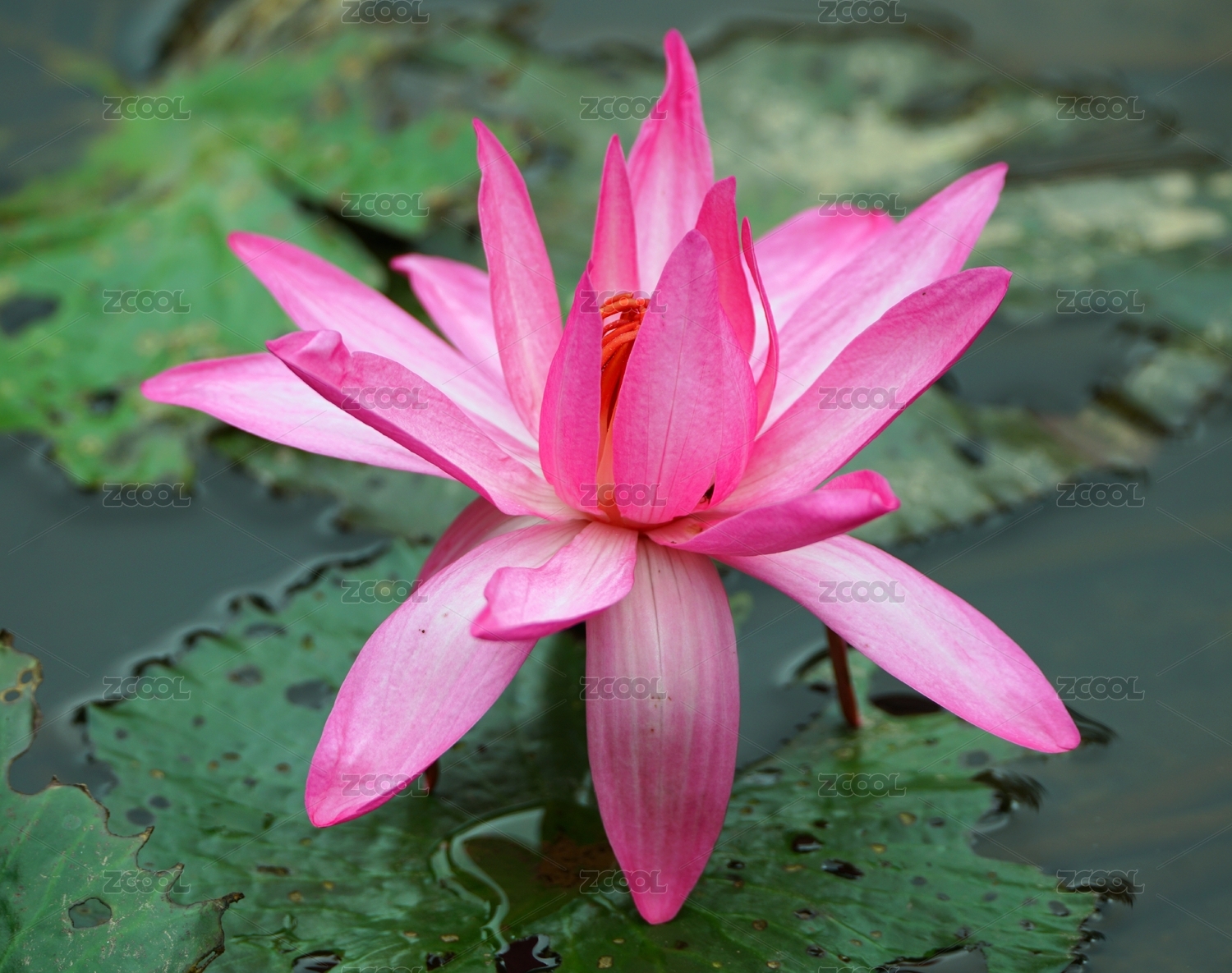 水中绽放的玫红色睡莲花