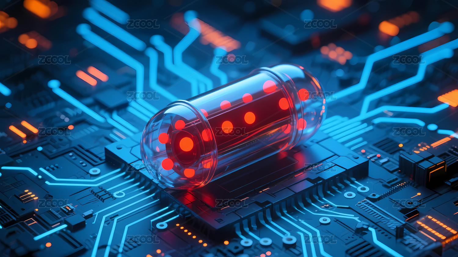 透明胶囊红点电路板