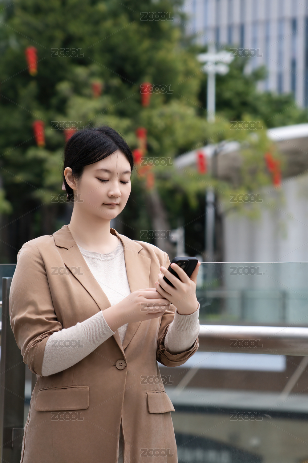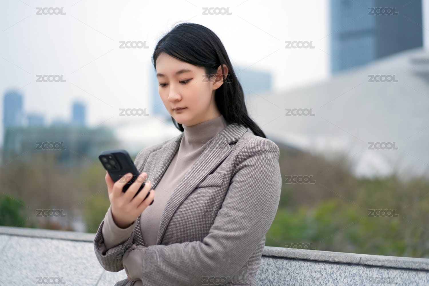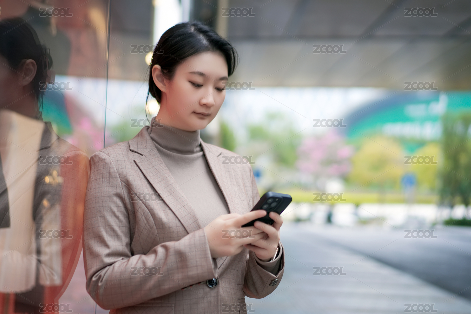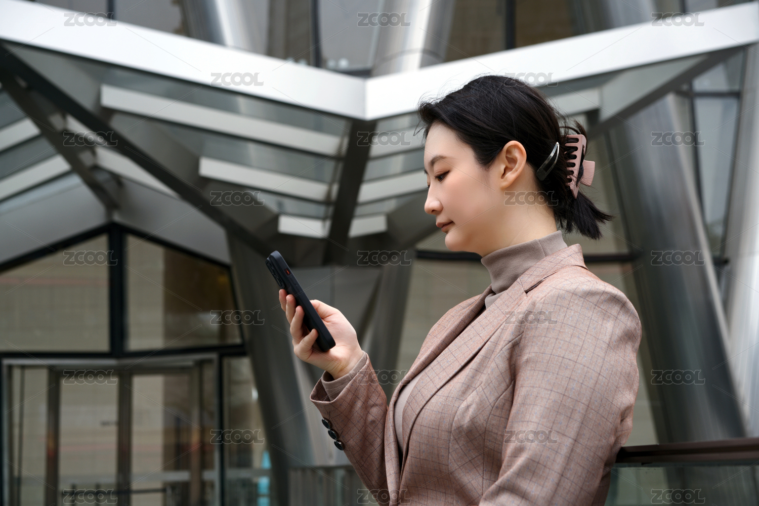 女商人,智能手机,咖啡休息时间,职业服装,户外,现代建筑背景,城市环境,企业生活方式,技术使用,职业导向