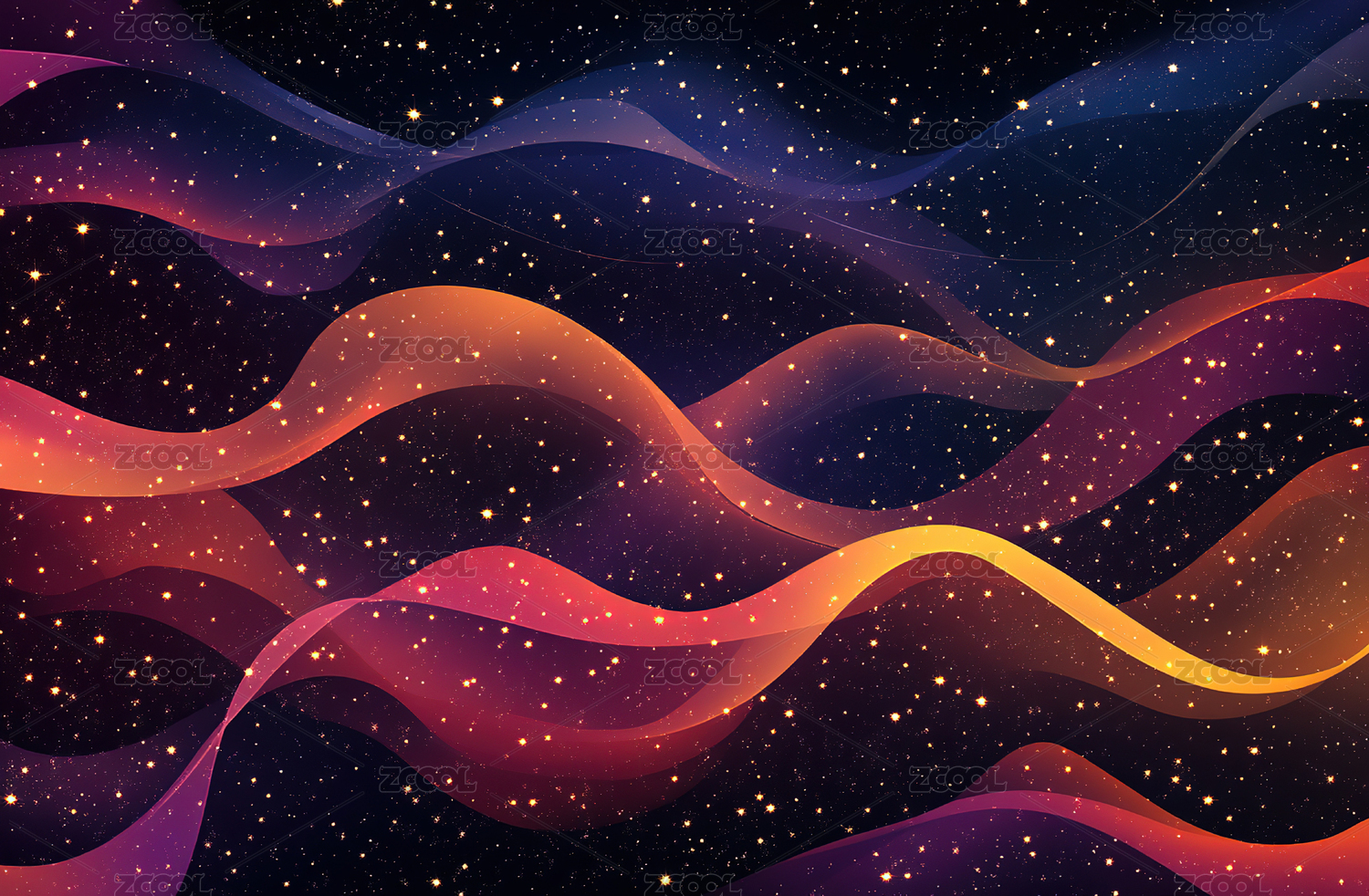 梦幻般的彩虹波浪与闪耀星光交织的宇宙景象