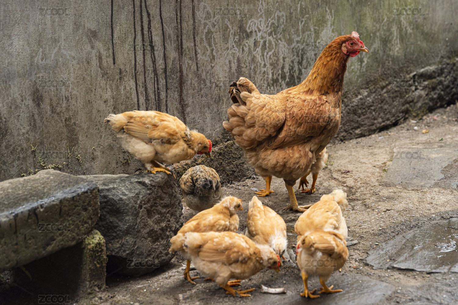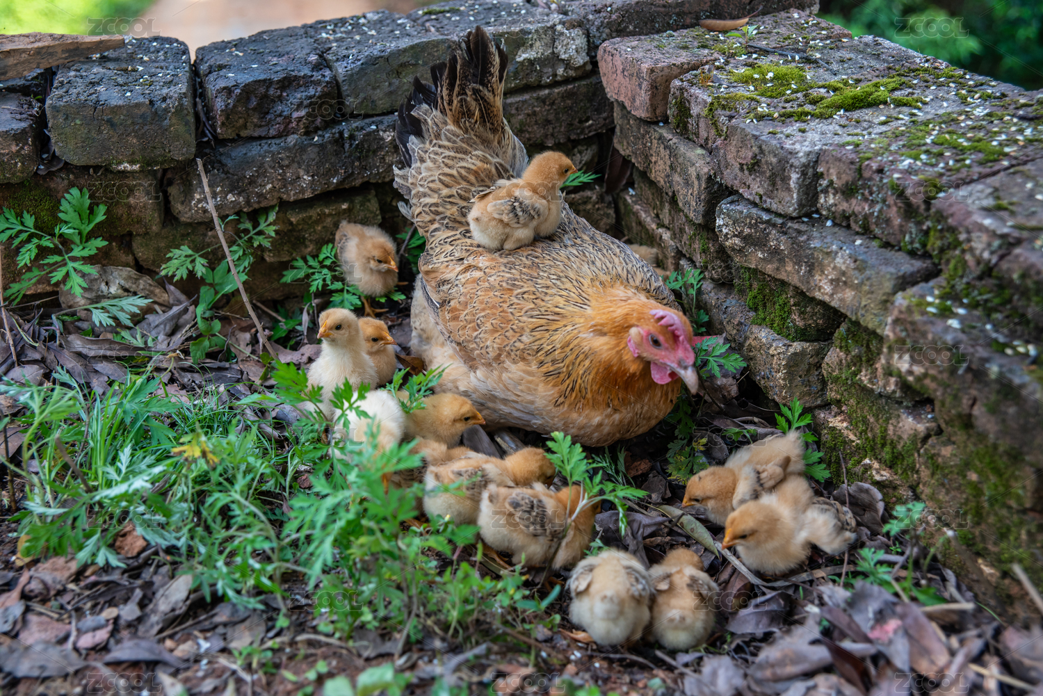 母鸡,小鸡,呵护,一家,爱护,羽翼,成长,母爱,幸福,顽皮