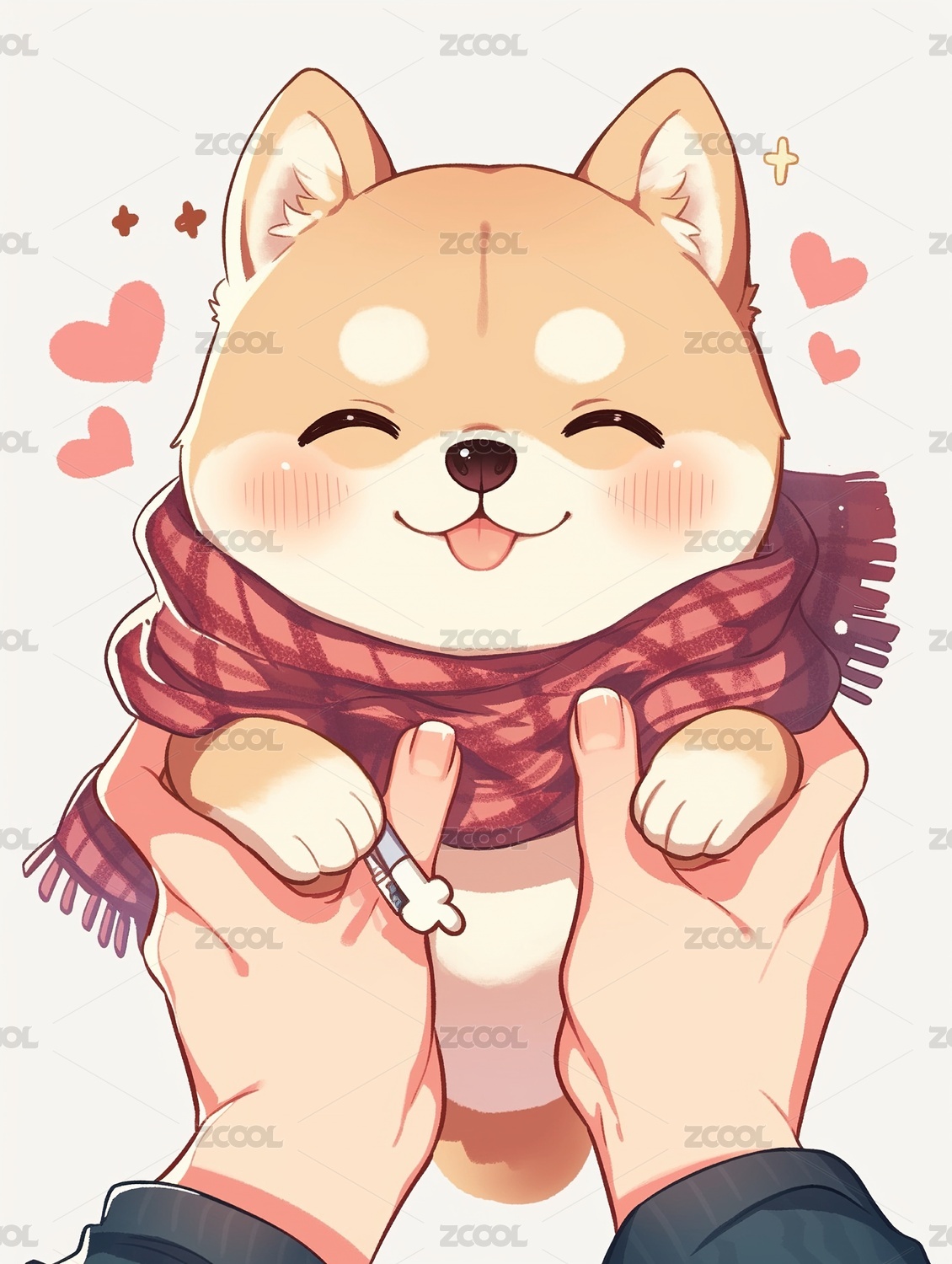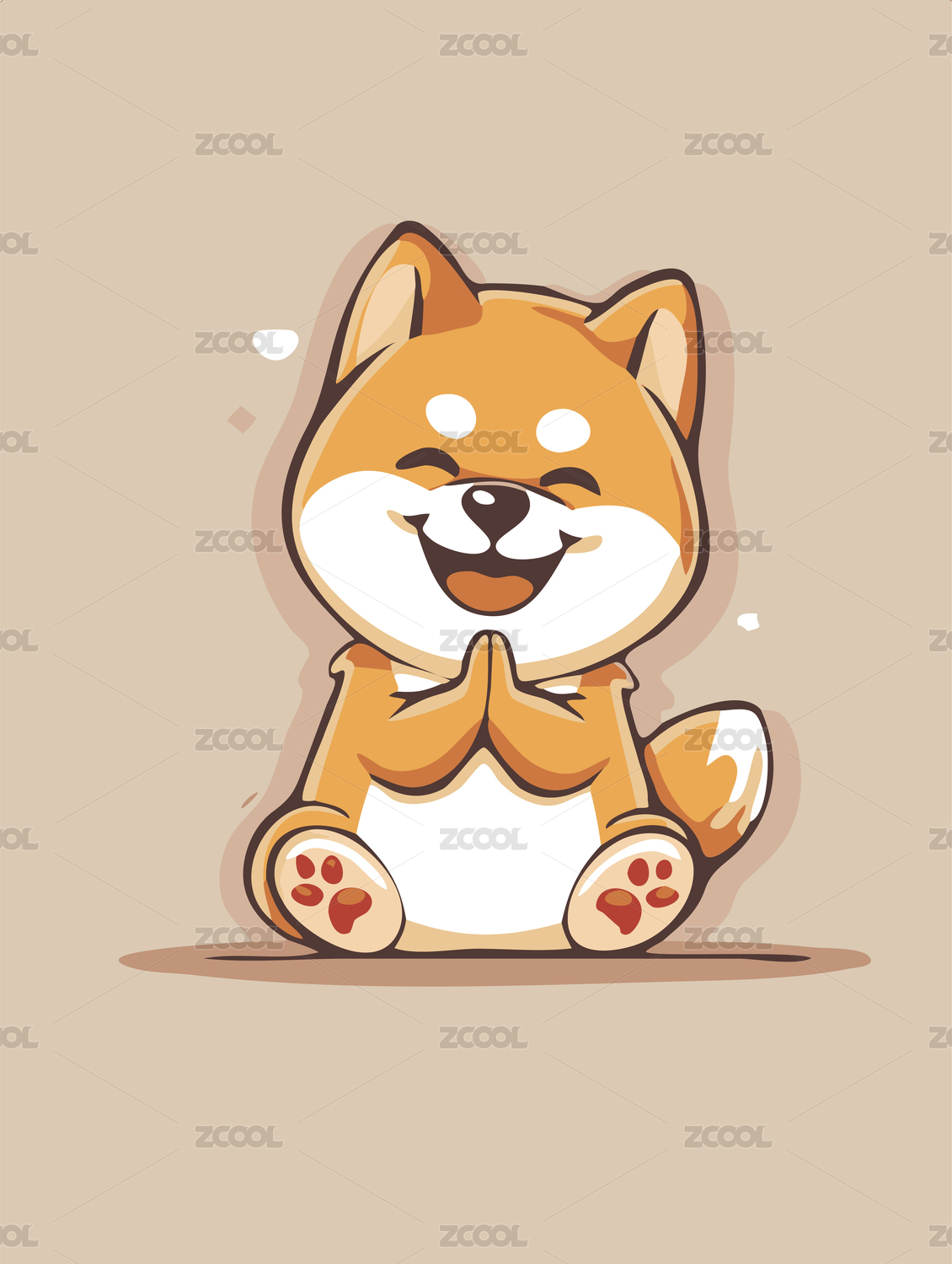 一只极简可爱的卡通狗狗在拍手鼓掌
