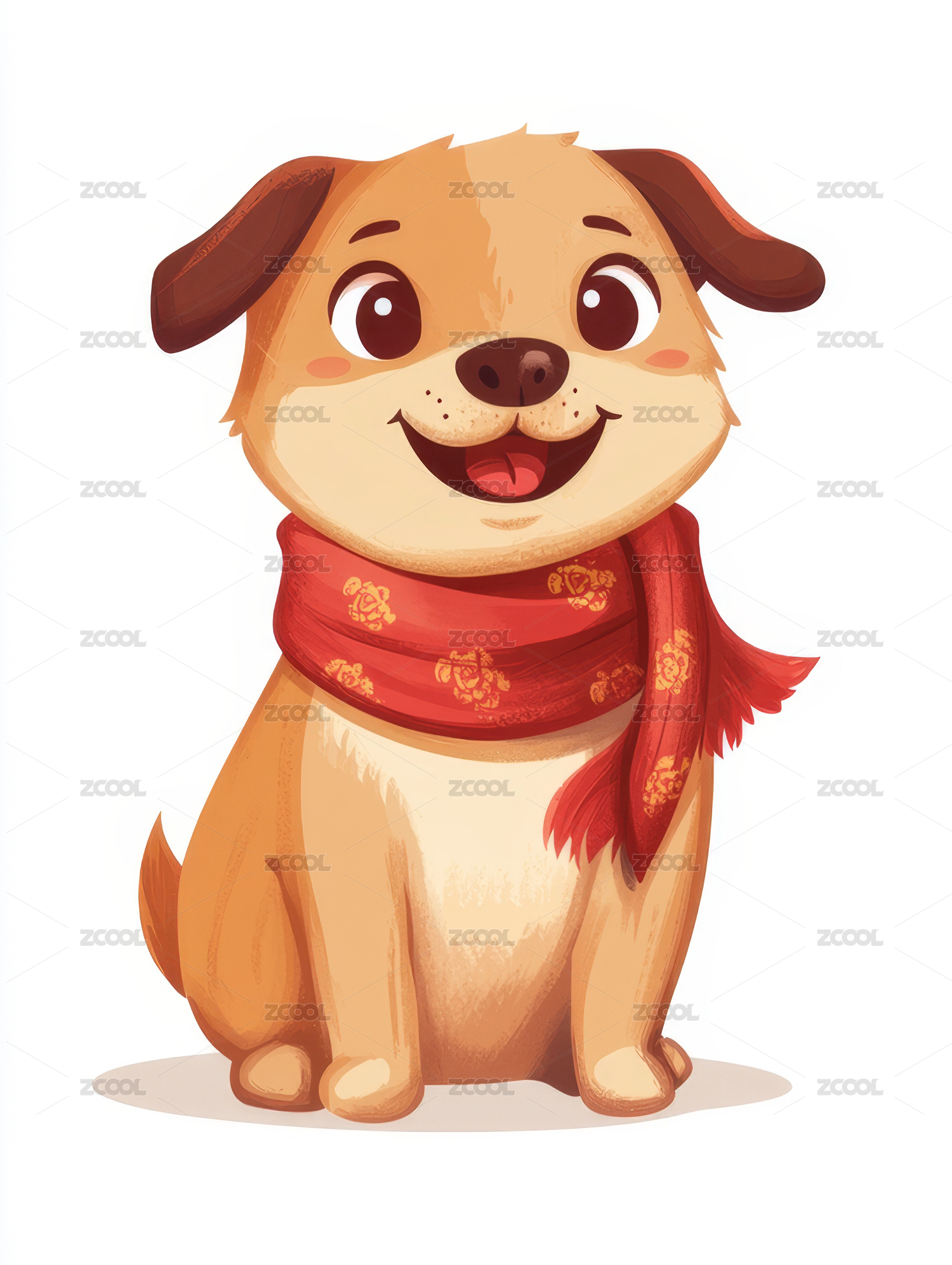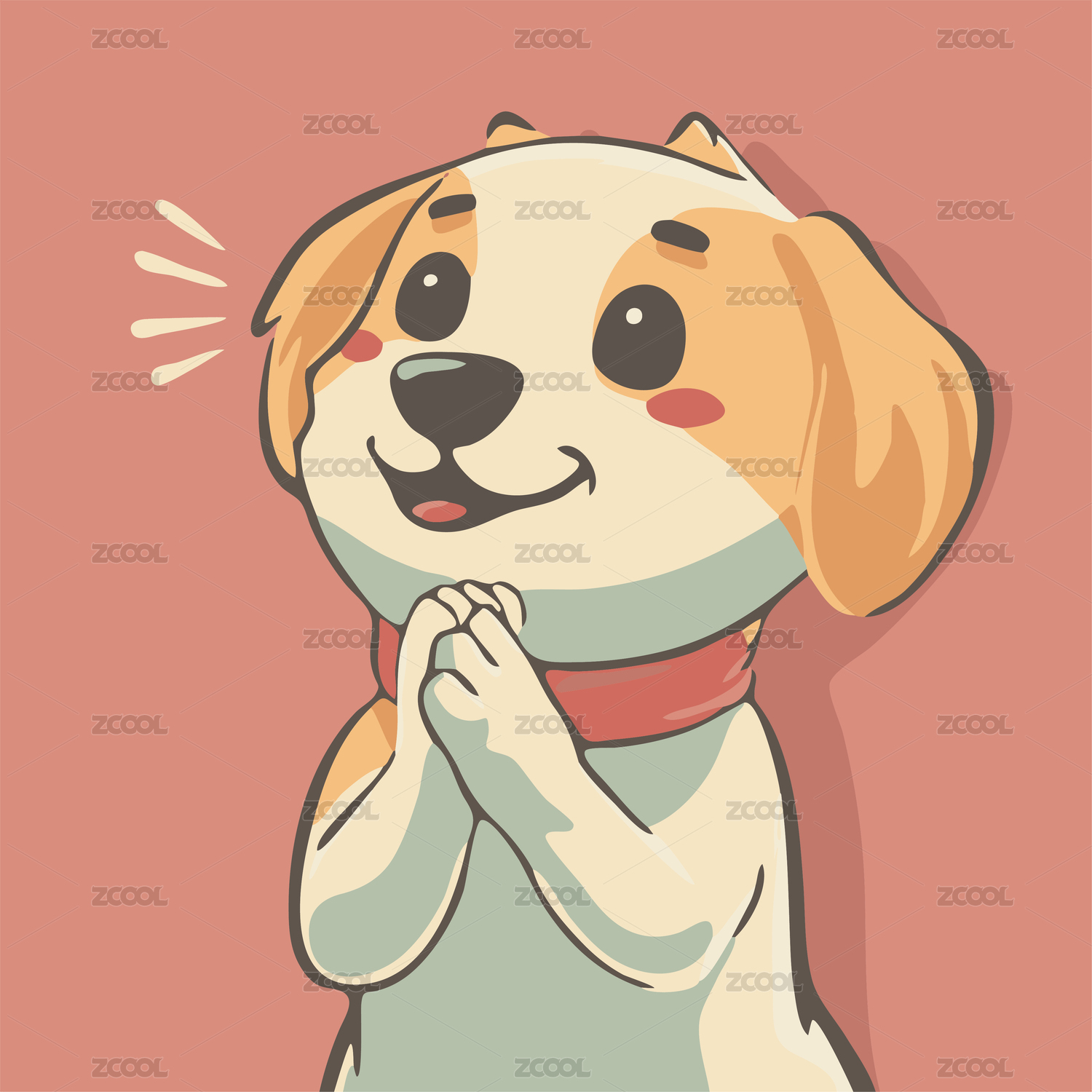 一只极简可爱的幼稚卡通狗狗在拍手鼓掌