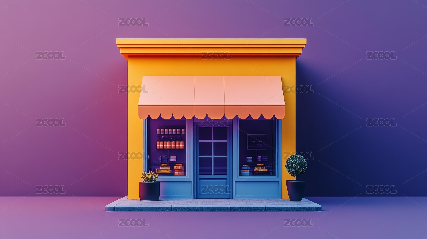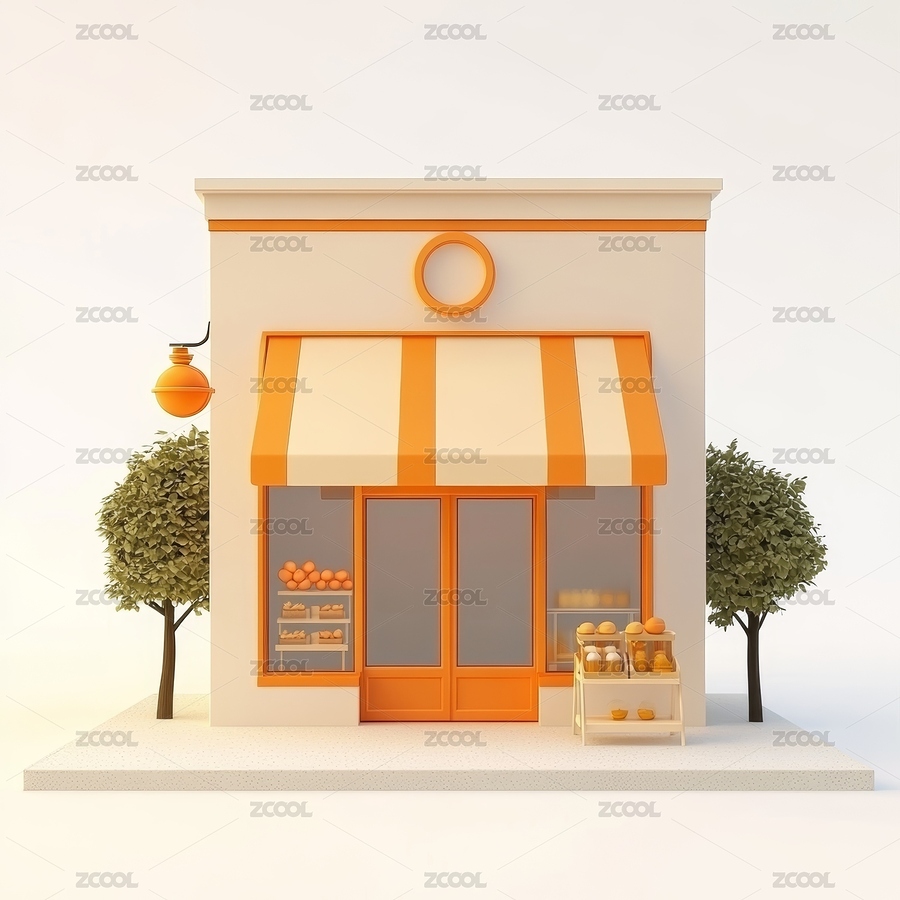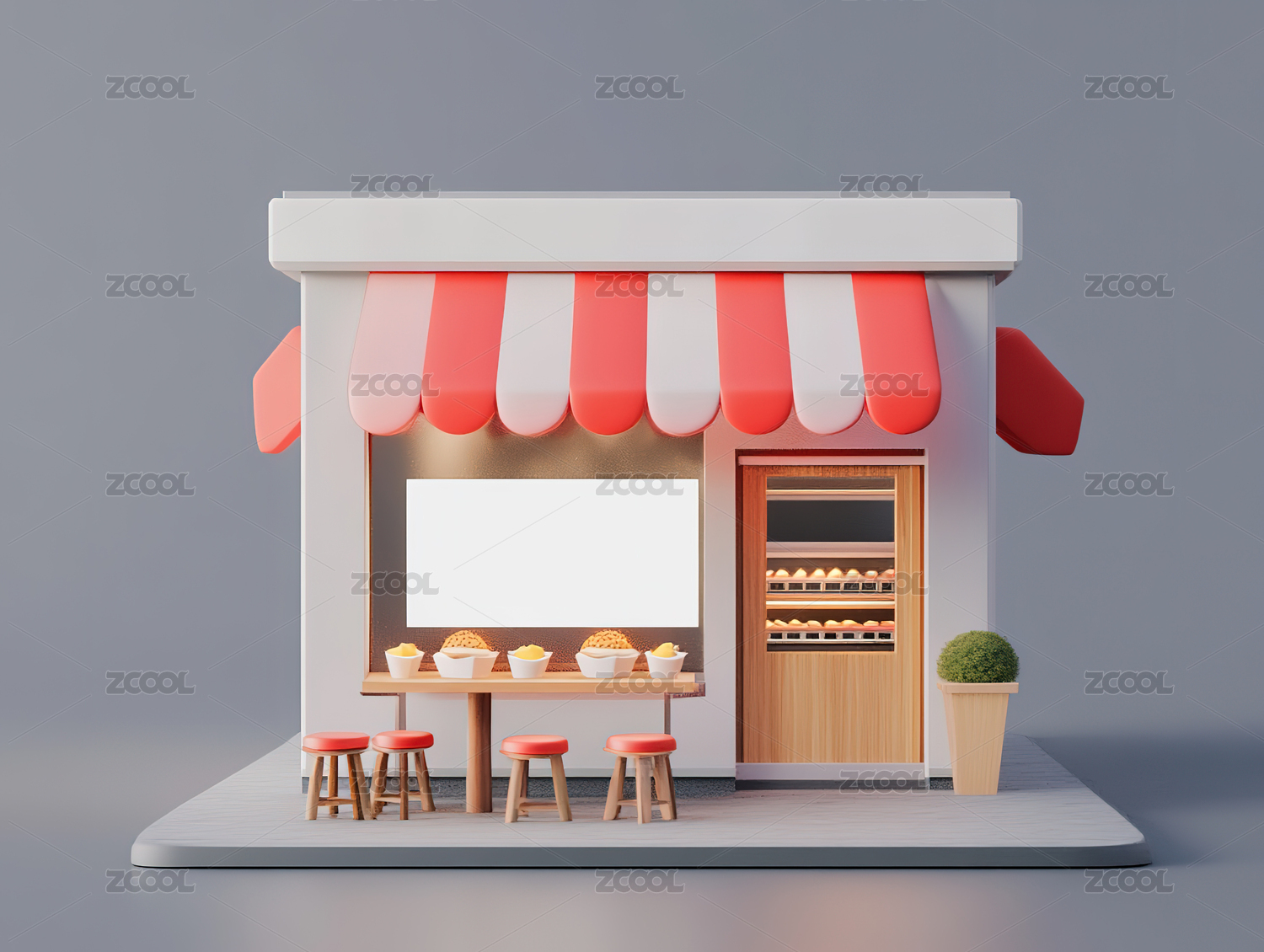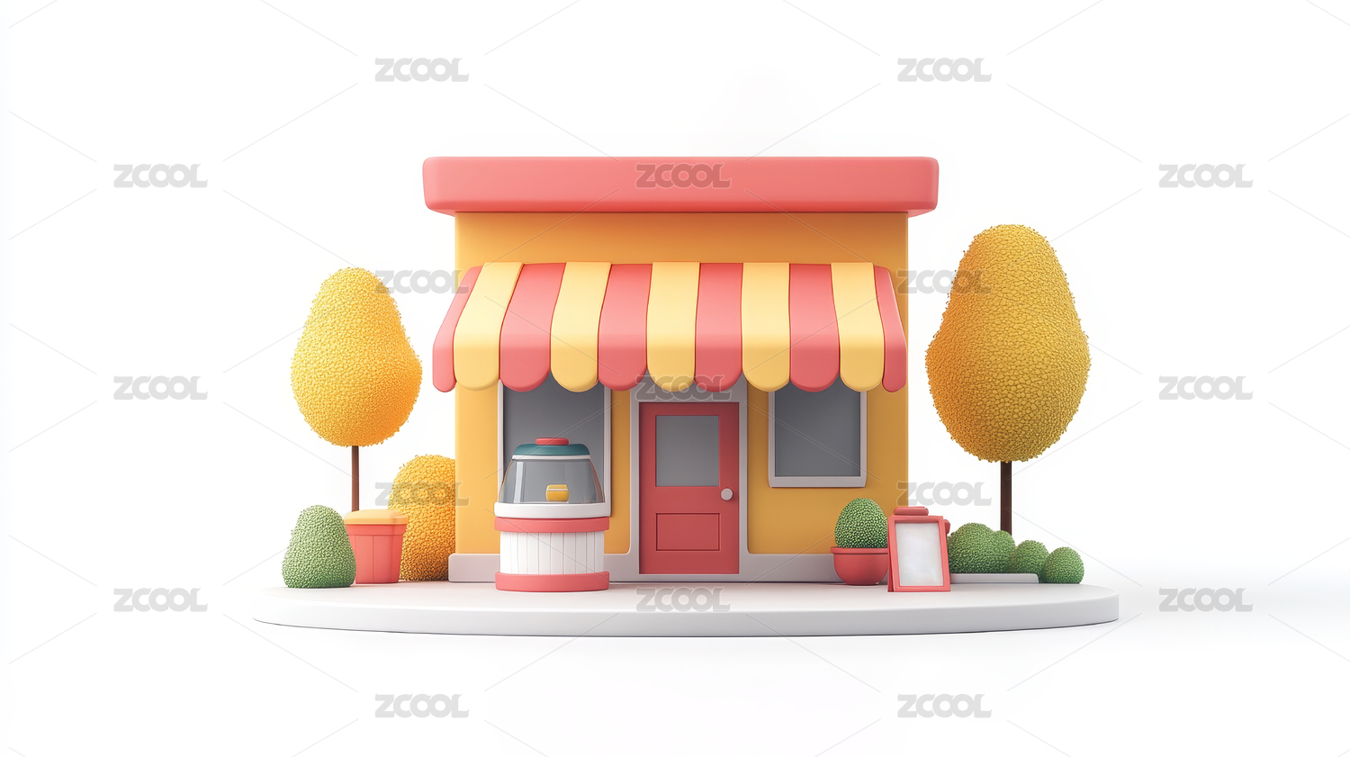 小店,店铺,卡通,3D,迷你,建筑,门面,招牌,遮阳棚,橱窗