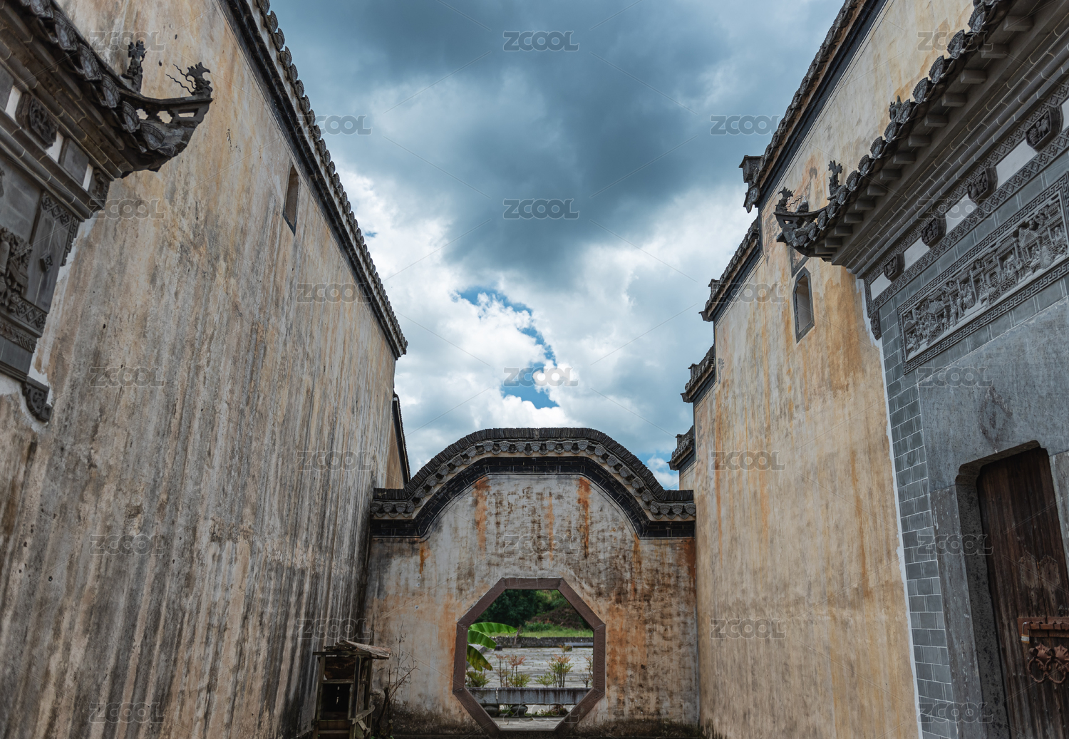 上杭客家围屋大门的门楣及屋檐,中国福建