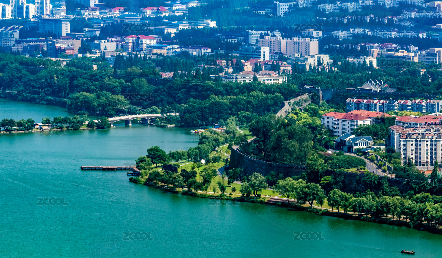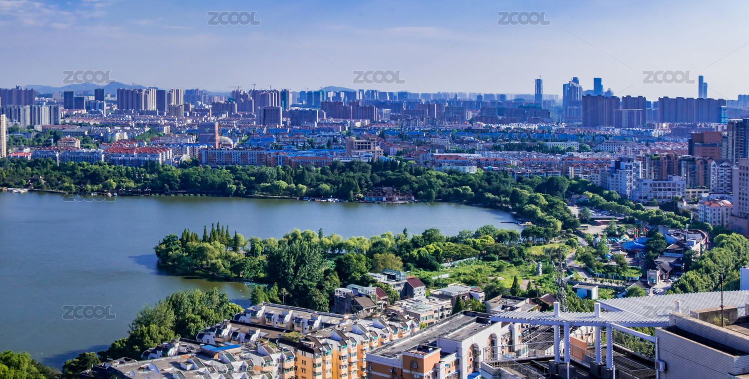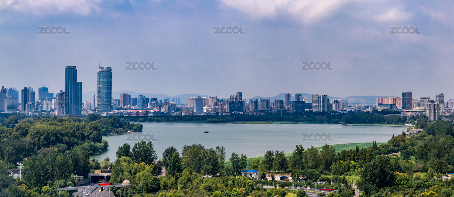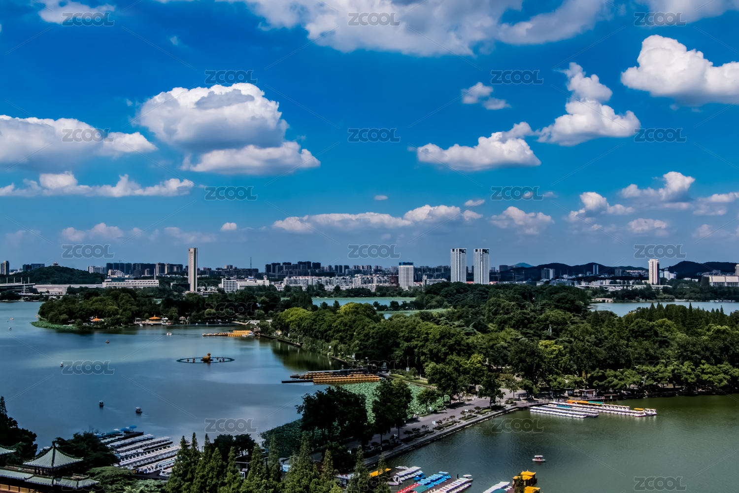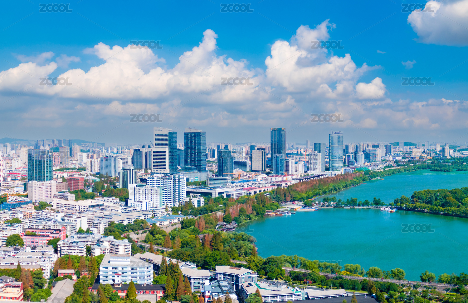 江苏省南京市玄武湖公园湖畔高楼建筑