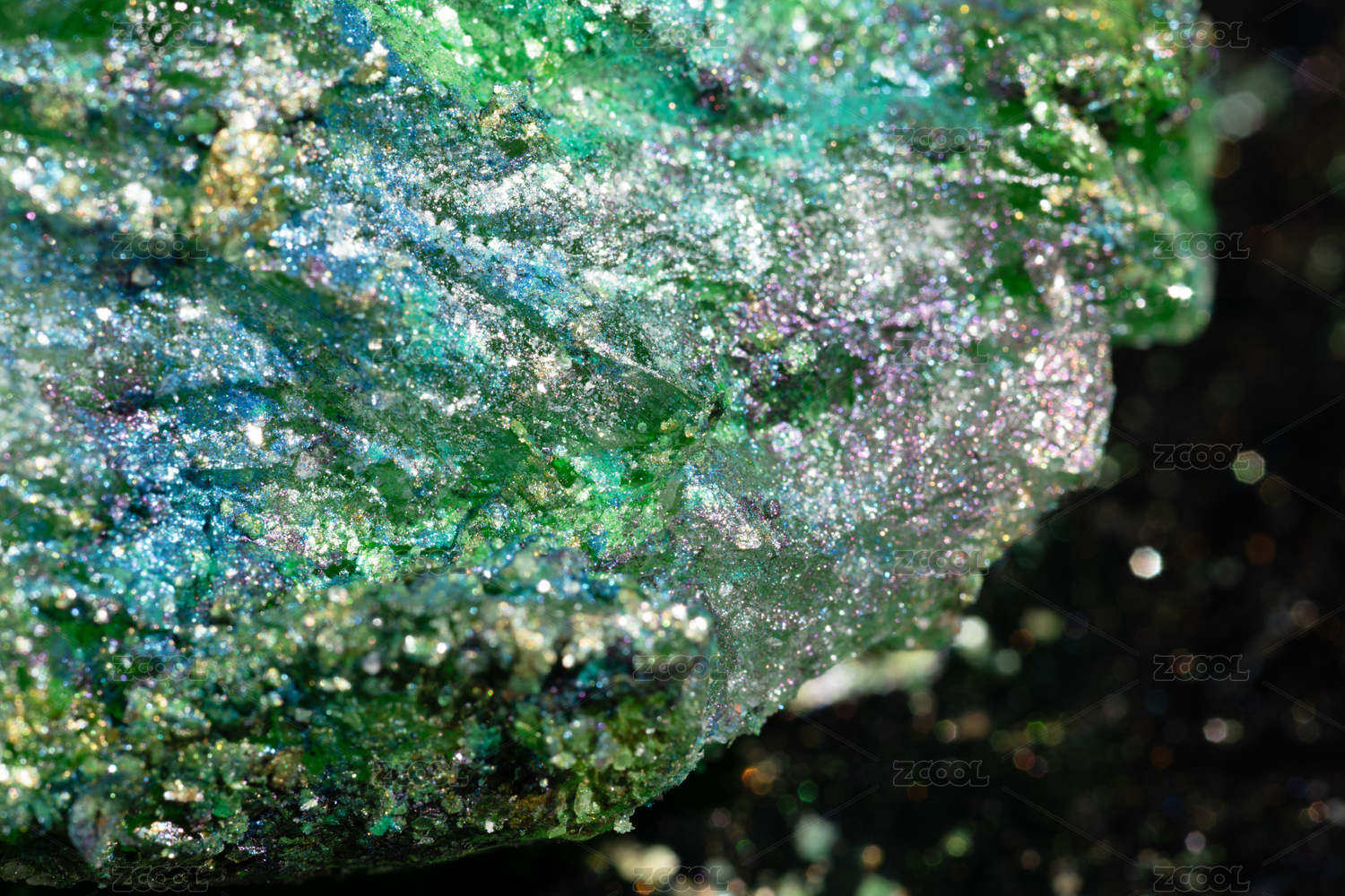灯光照射下的五彩缤纷的矿石