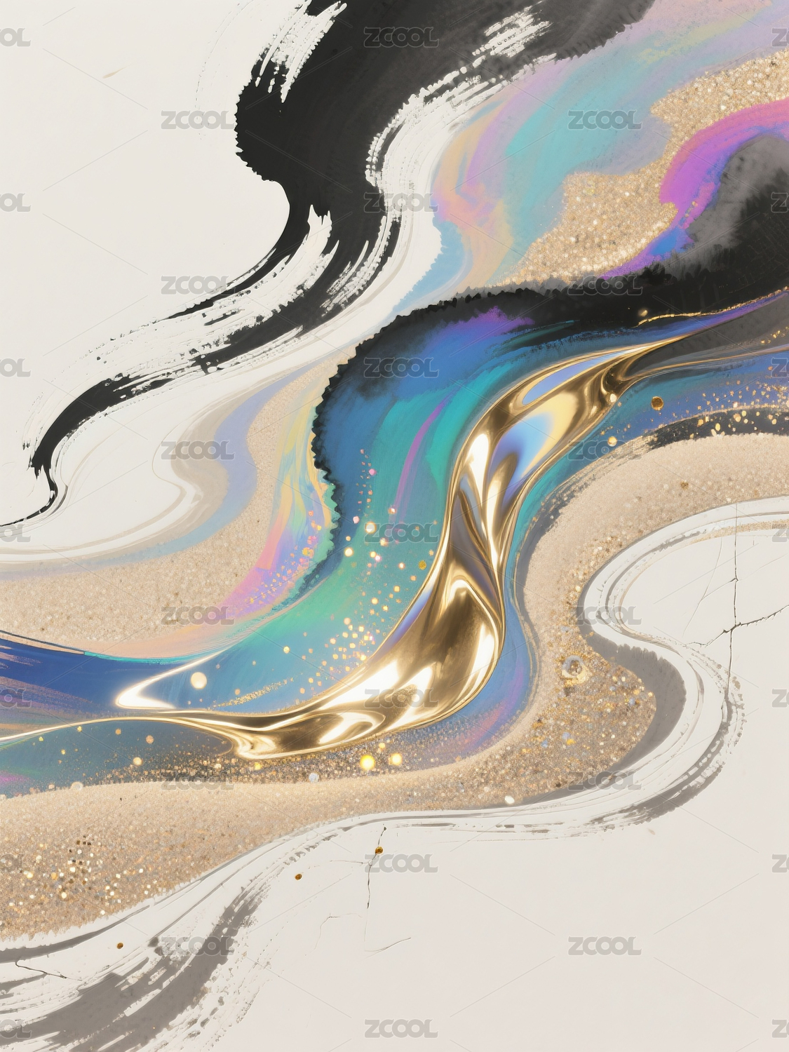 抽象画,欧美抽象,装饰画,水墨,烫金,线条,烫金线条,层次分明,水墨渐变,现代装饰