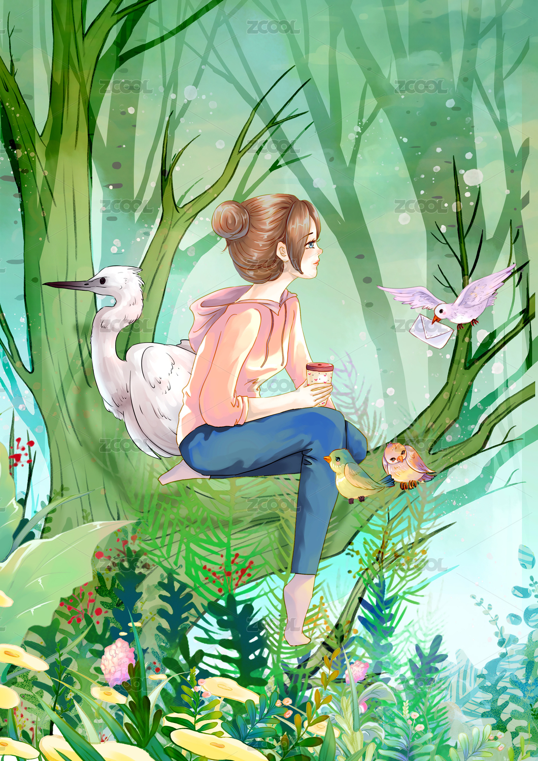 春天清新治愈商业插画