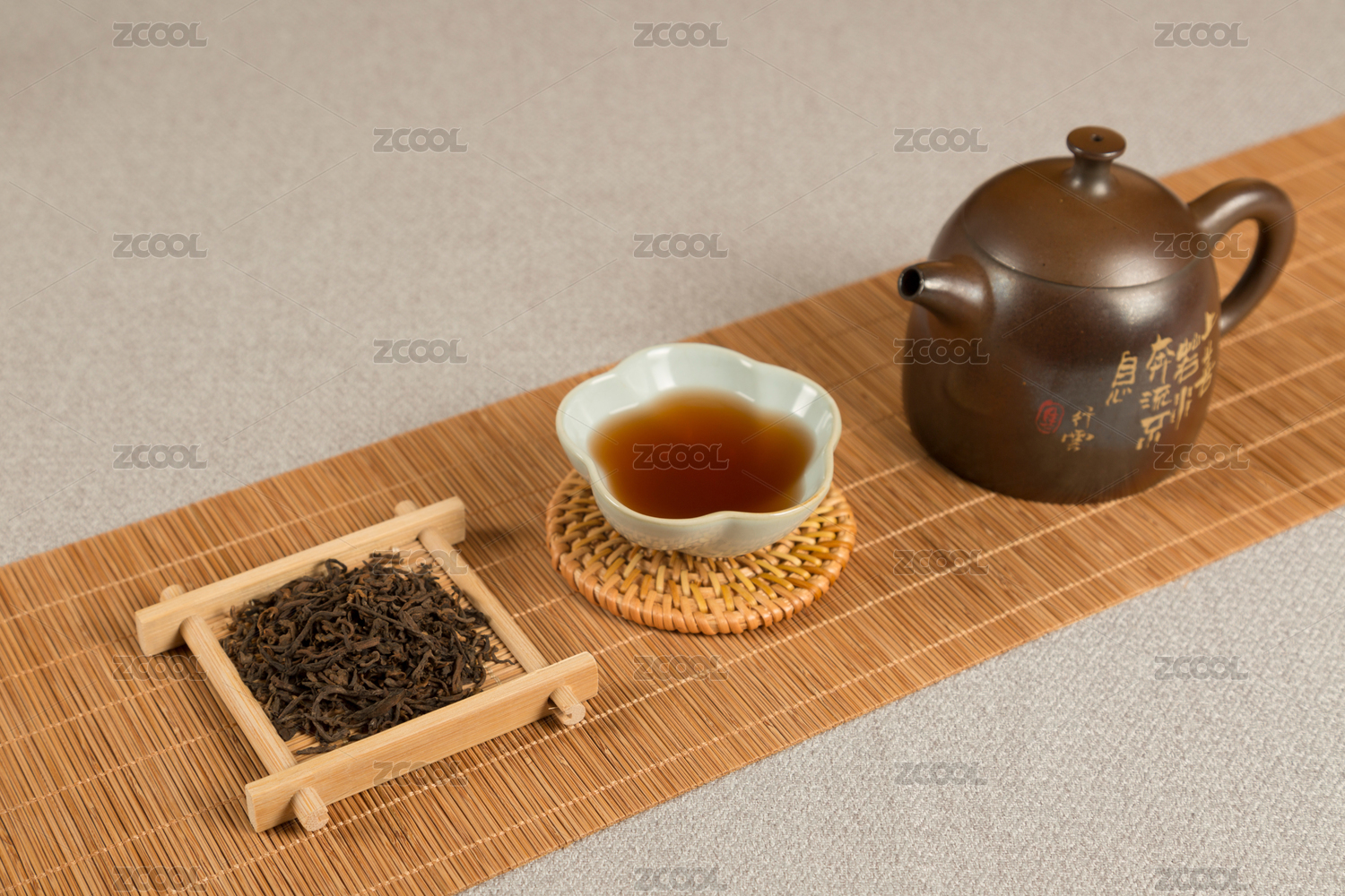 木色背景上的中国茶茶道茶文化