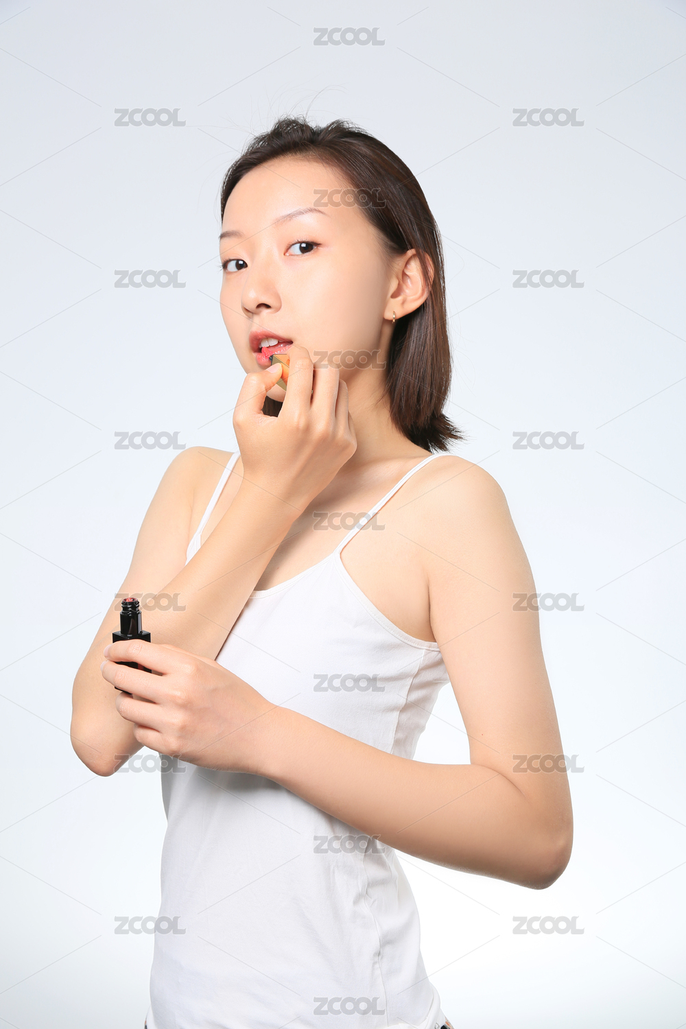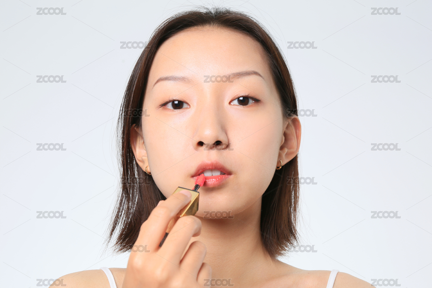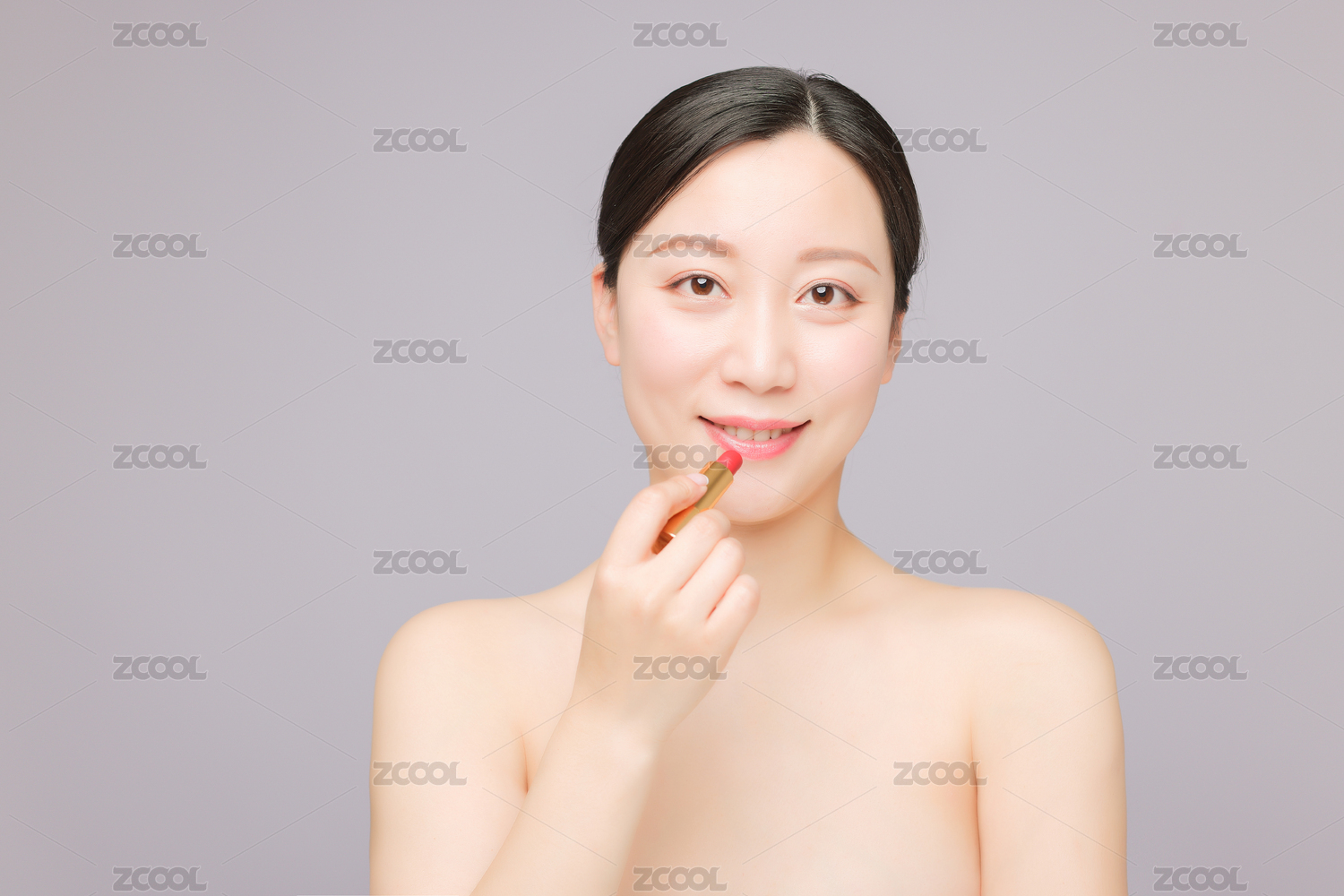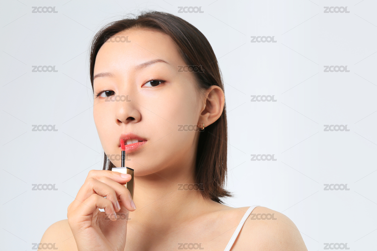 使用口红的年轻亚洲女孩 时尚优雅有气质