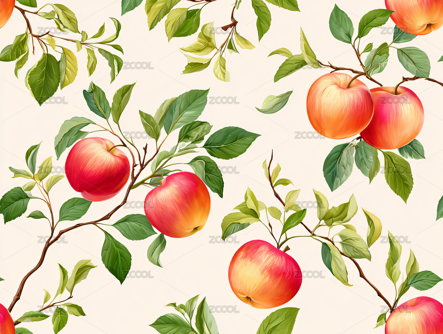 四方连续花纹苹果插画