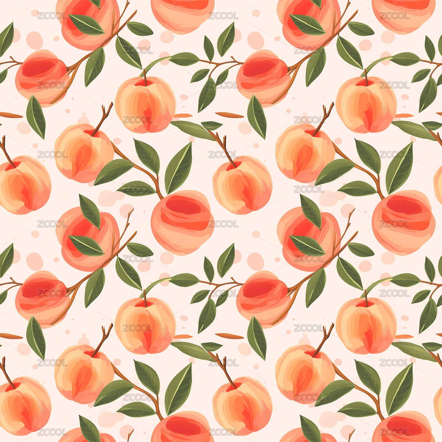 桃子无缝平铺四方连续纹样图案背景
