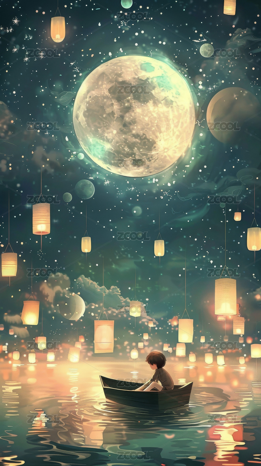 夜晚,晚上,夜间,AIGC202403,传统,文化,中秋节,节日,插画,插图