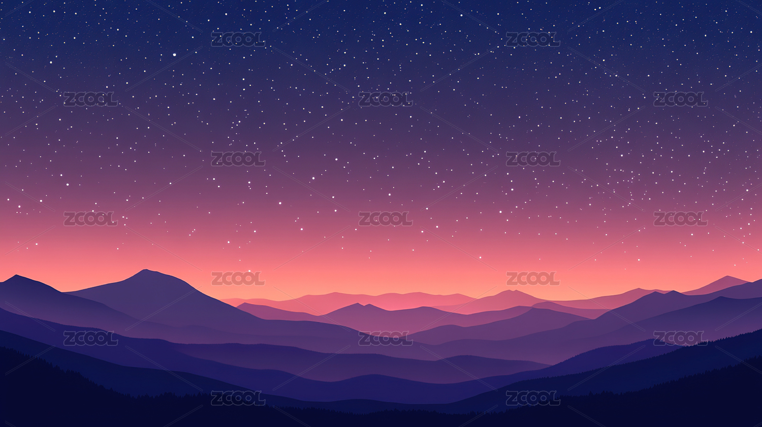 星空下的连绵山峦