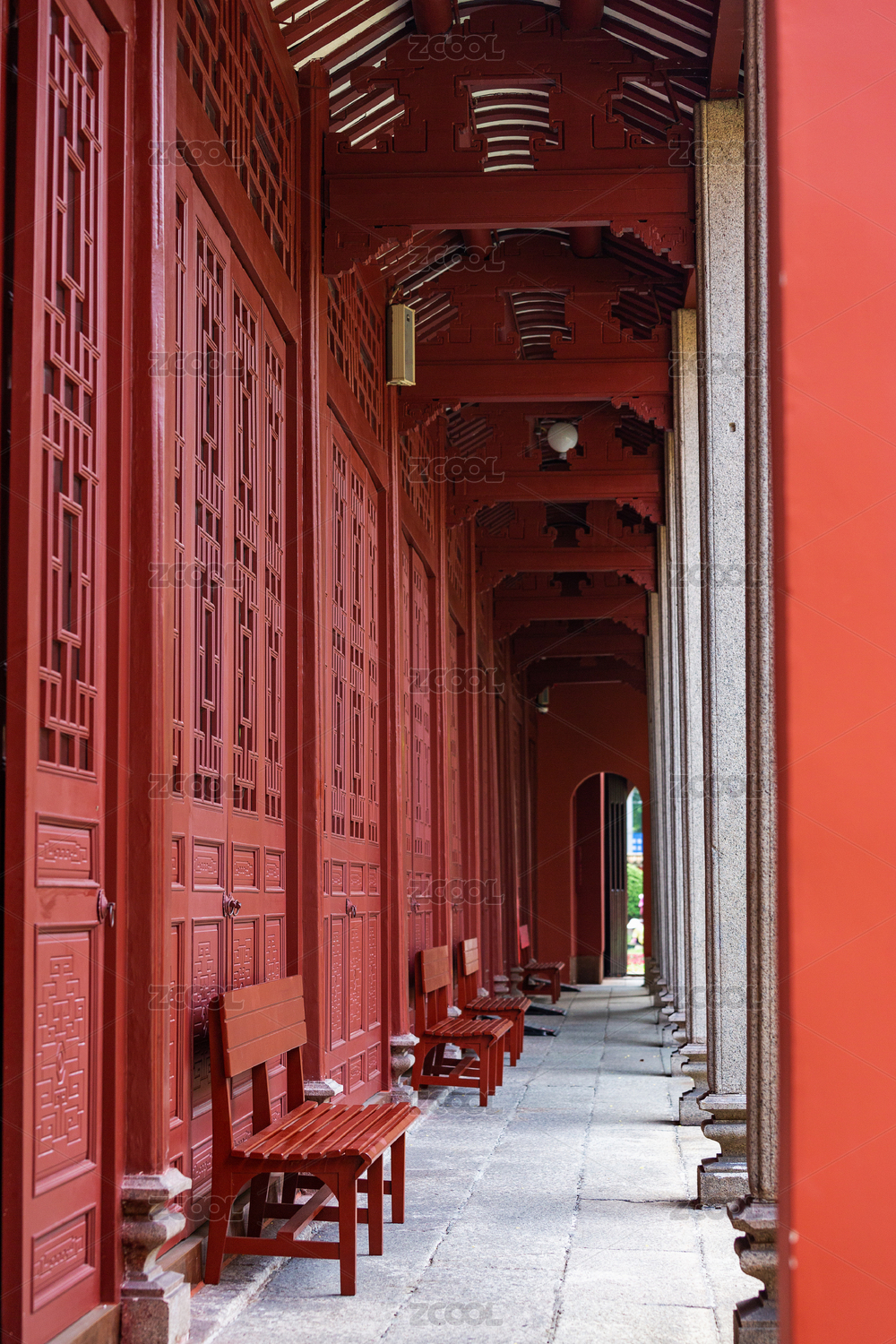 园林建筑木头红色大门