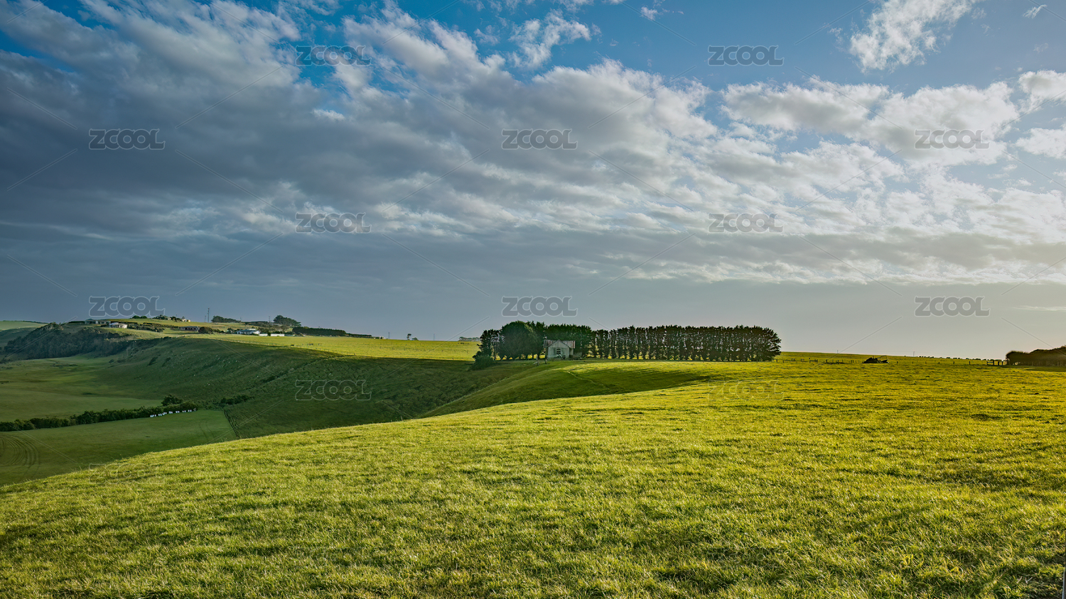 草原,丘陵,山坡,蓝天,白云,天空,树,教堂,小镇,欧洲