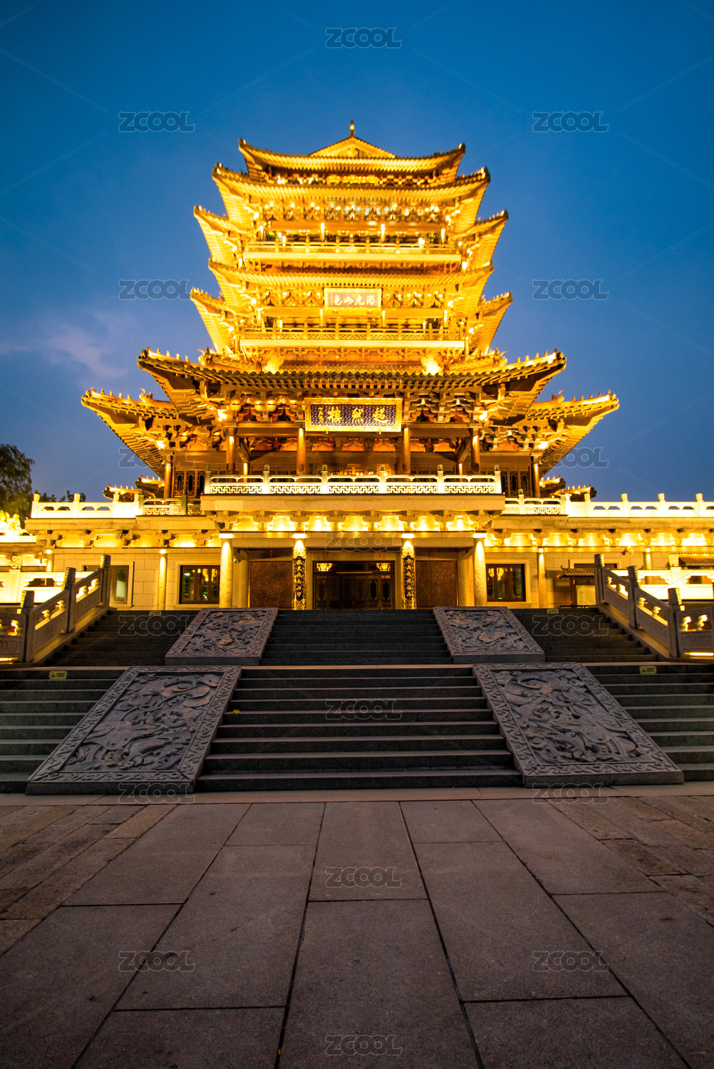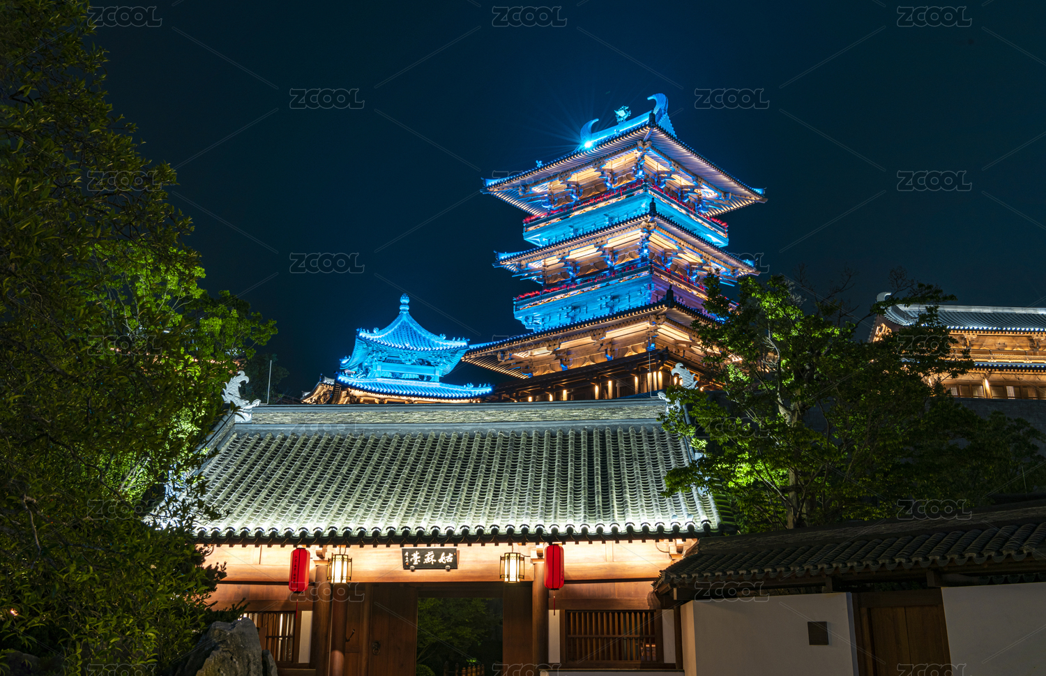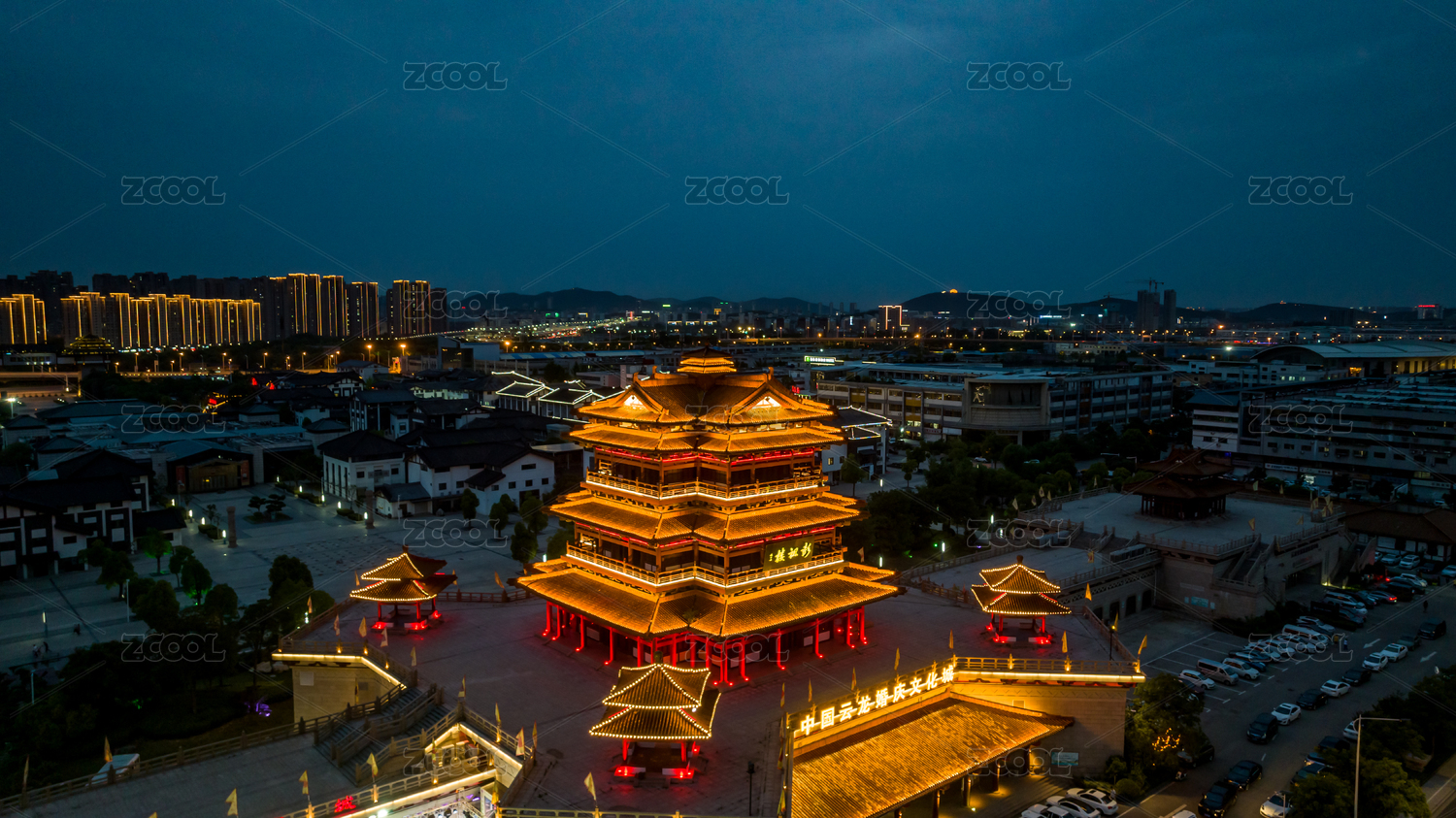 浙江义乌文化景观鸡鸣阁建筑夜景