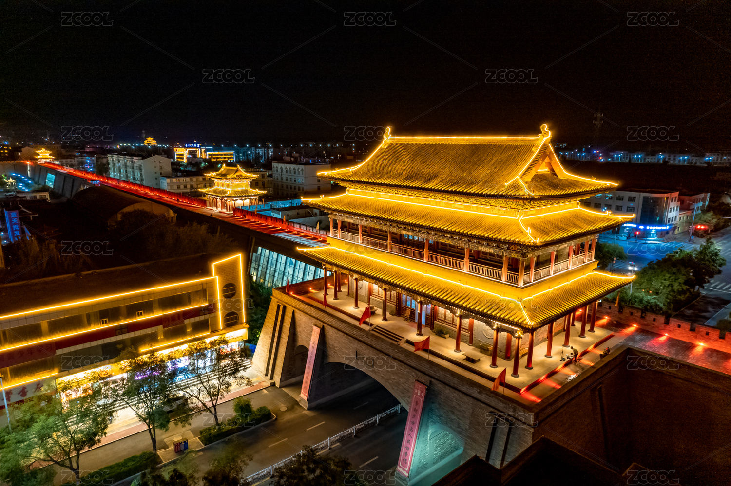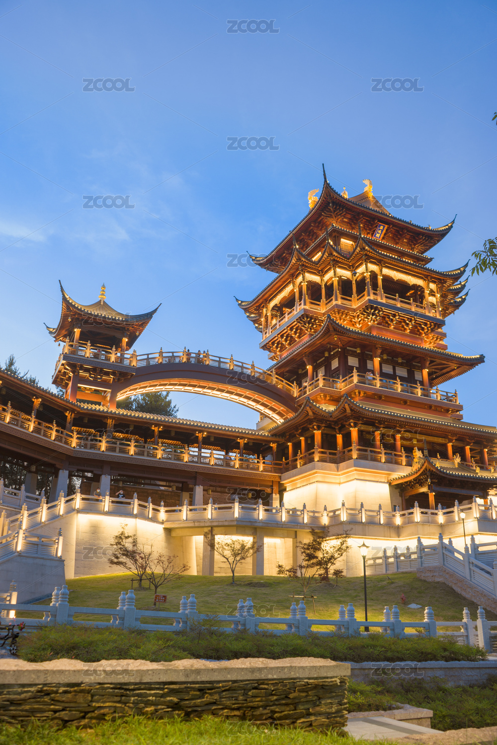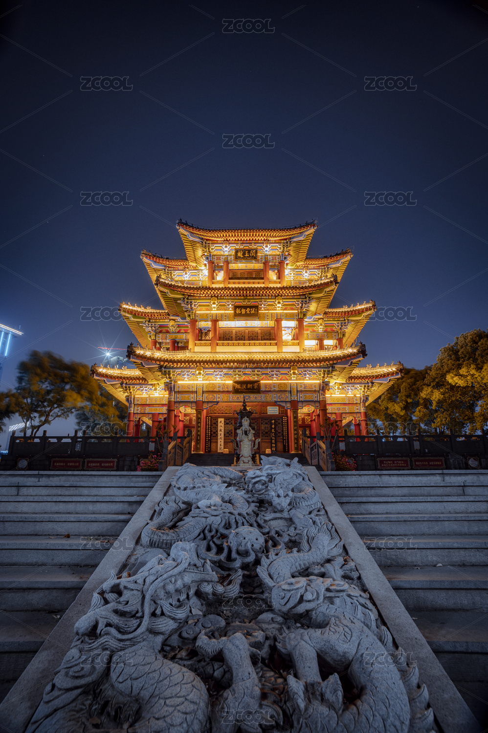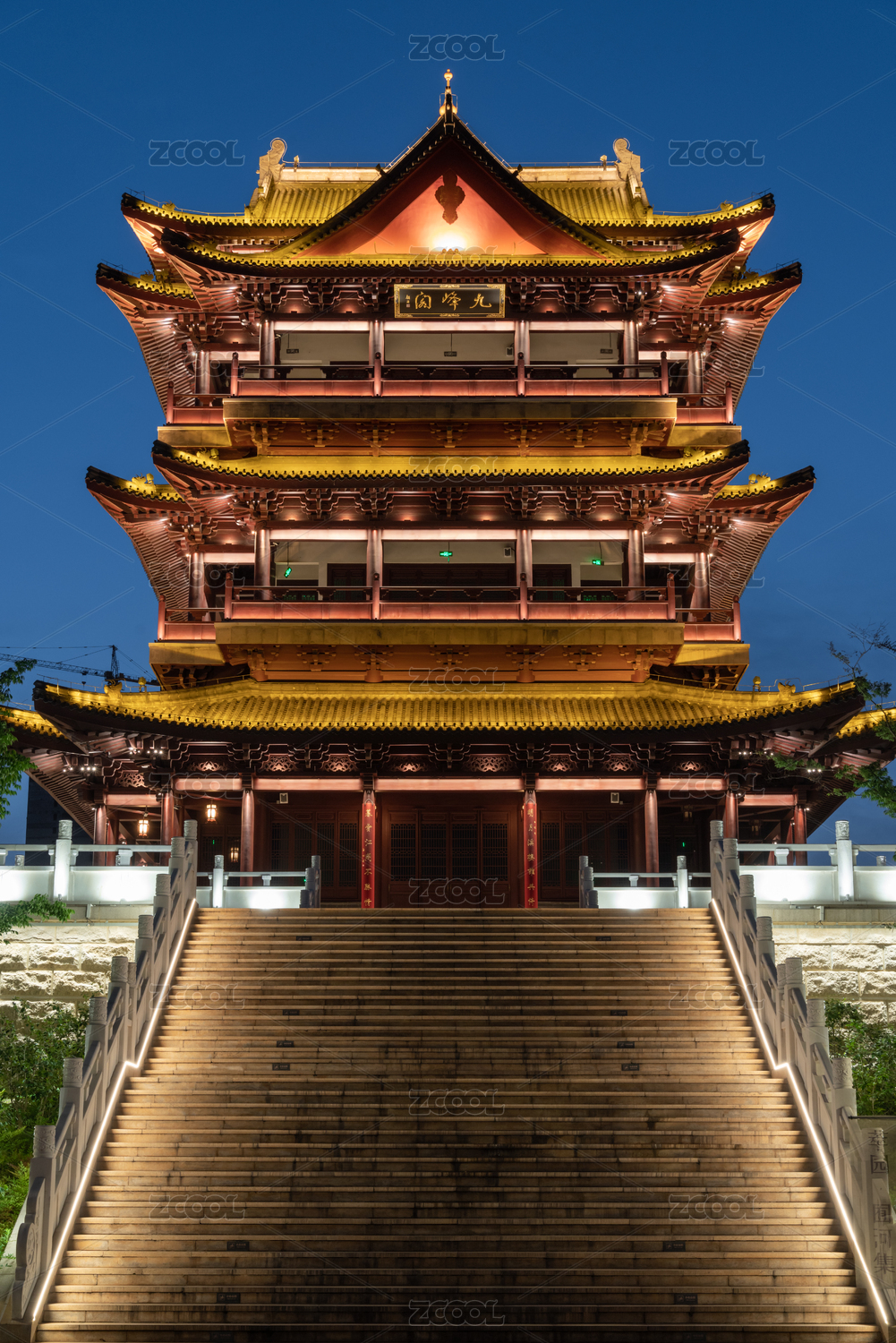 浙江义乌文化景观鸡鸣阁建筑夜景