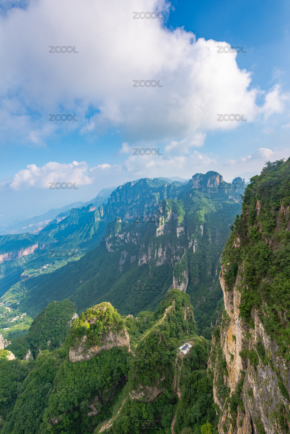 秋天晴空下的中国湖南张家界天门山景区延绵起伏的崇山峻岭