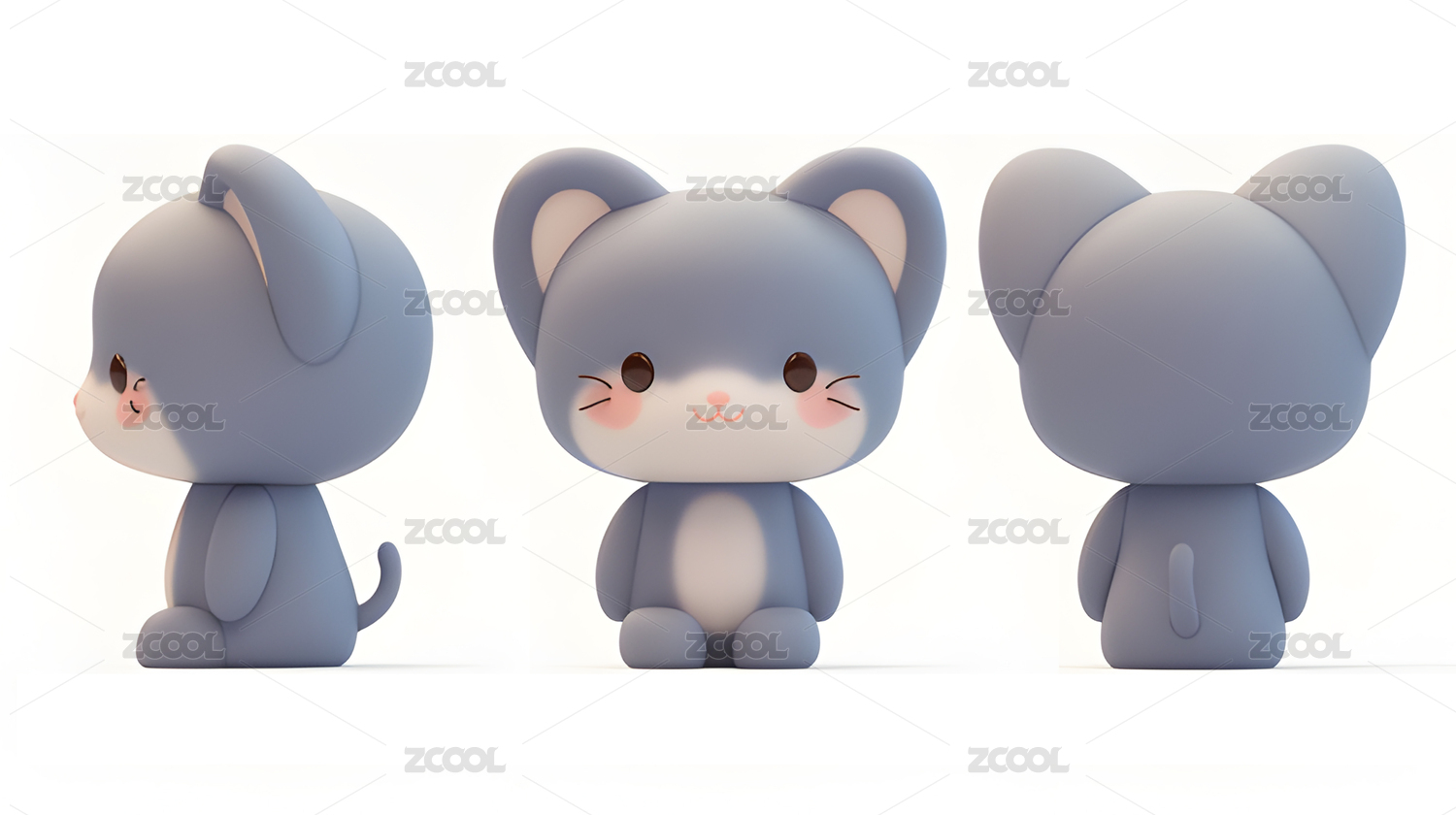 一组可爱的灰色小猫建模IP