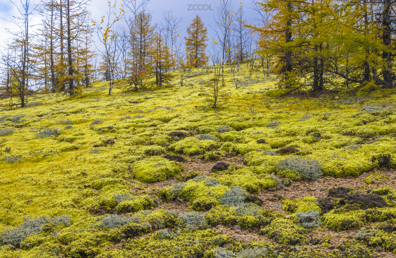 中国大兴安岭长满厚厚的苔藓的山坡