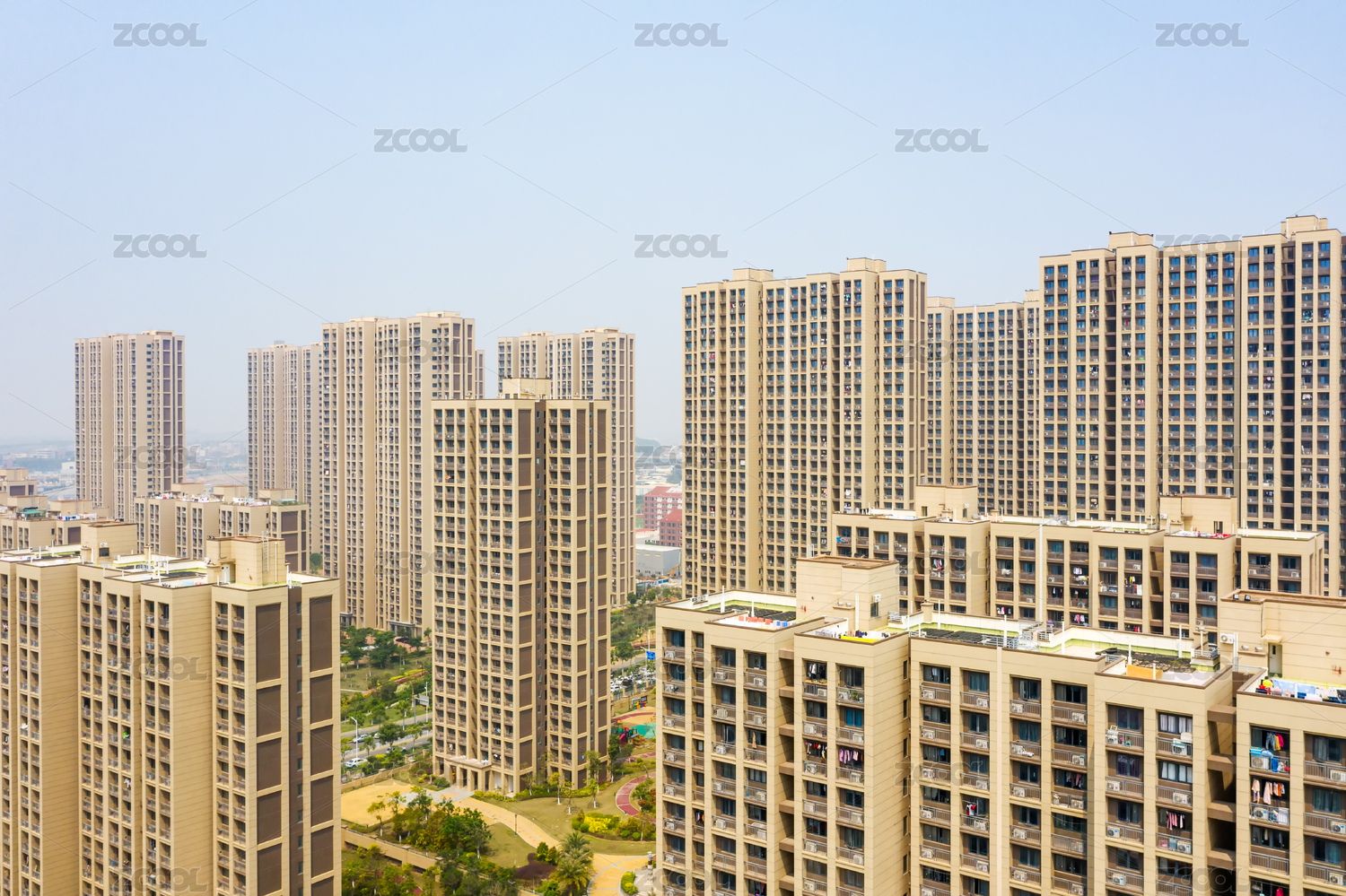 航拍佛山蓝天背景新建高层住宅小区