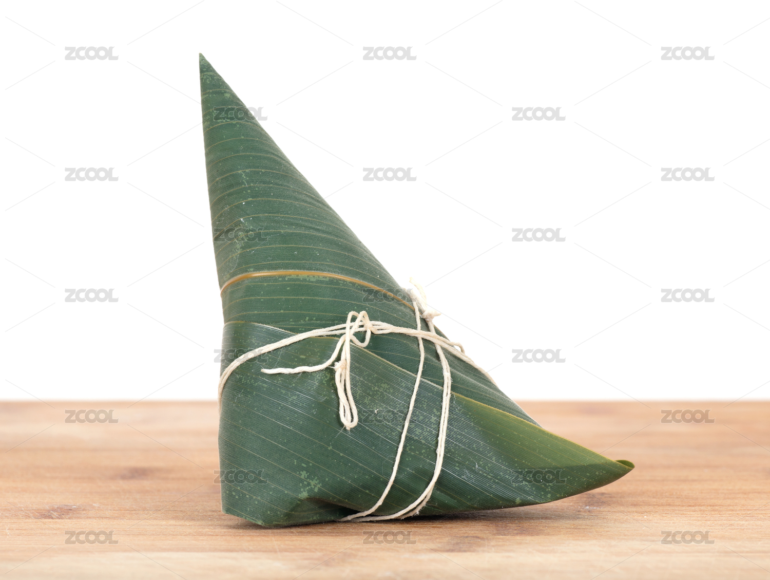 粽叶上包好的新鲜粽子/中国端午节传统节日美食