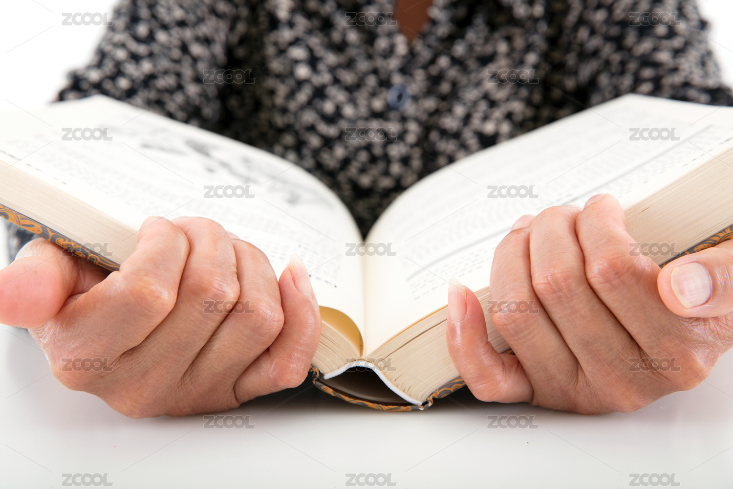 手捧大开本书籍阅读