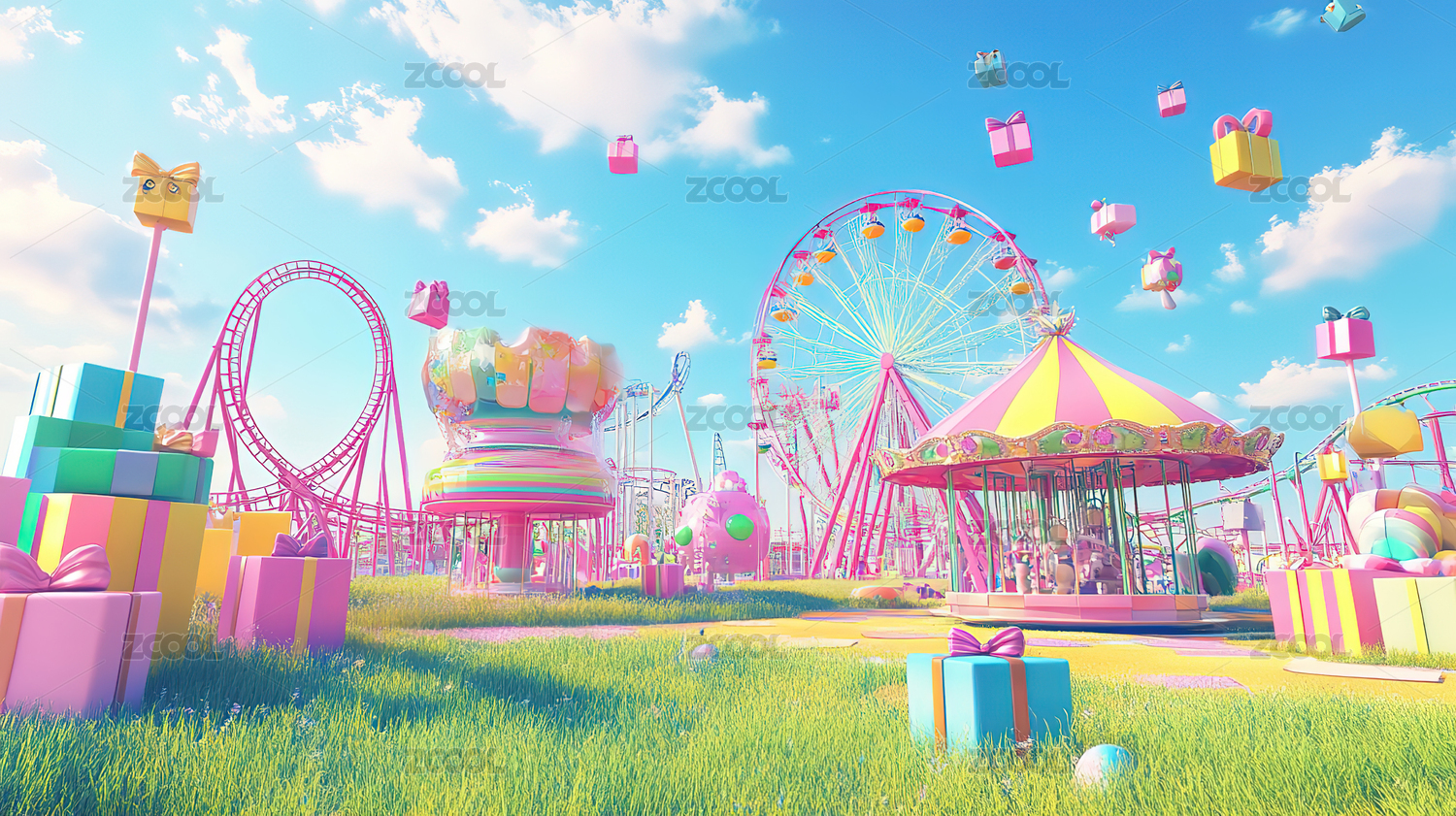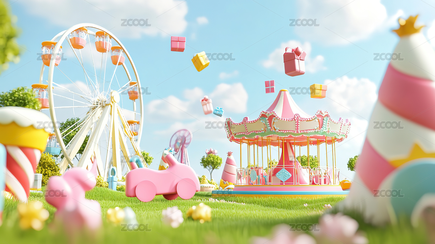 儿童节,六一,节日,游乐园,卡通,3d,立体,彩色,活泼,童年