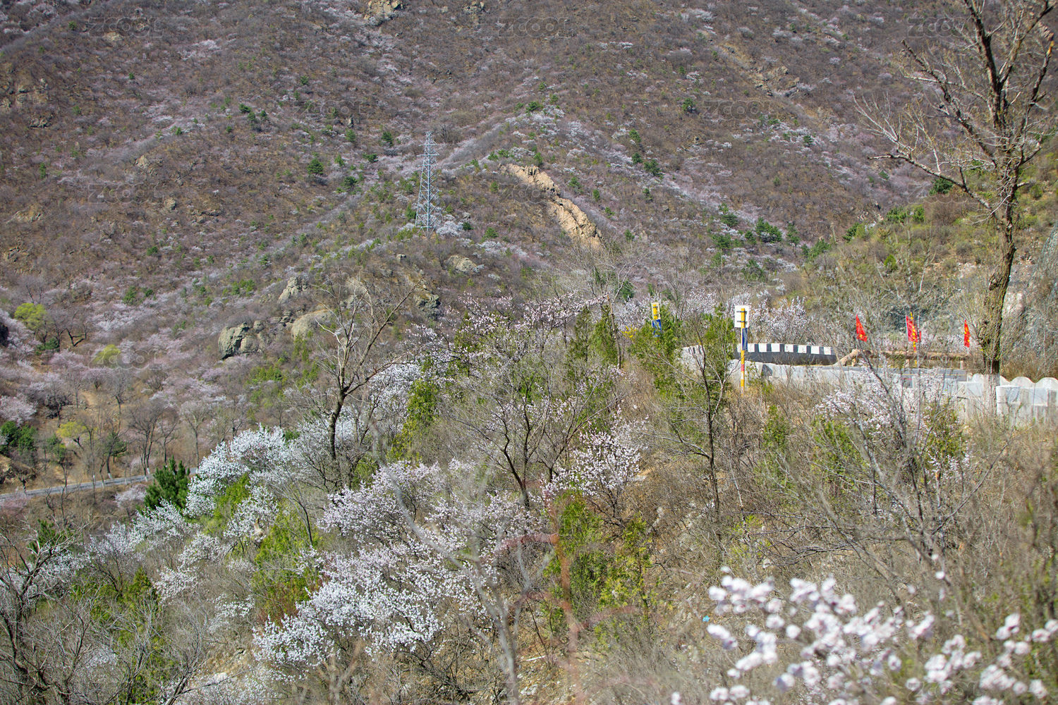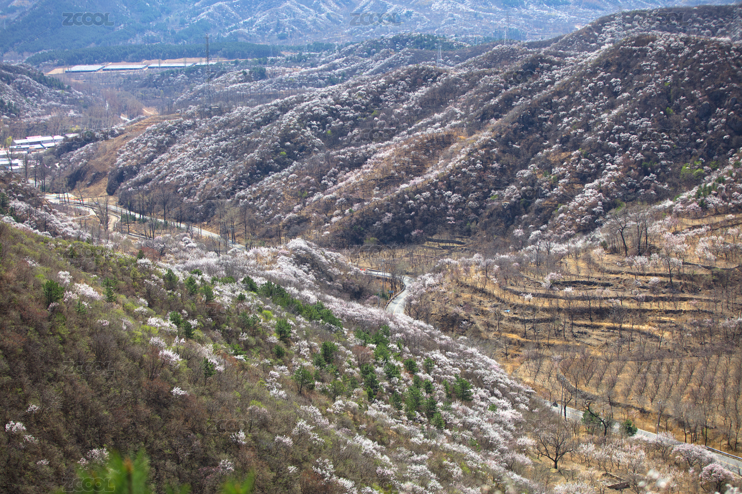 北京山区风光沿线满山山桃花