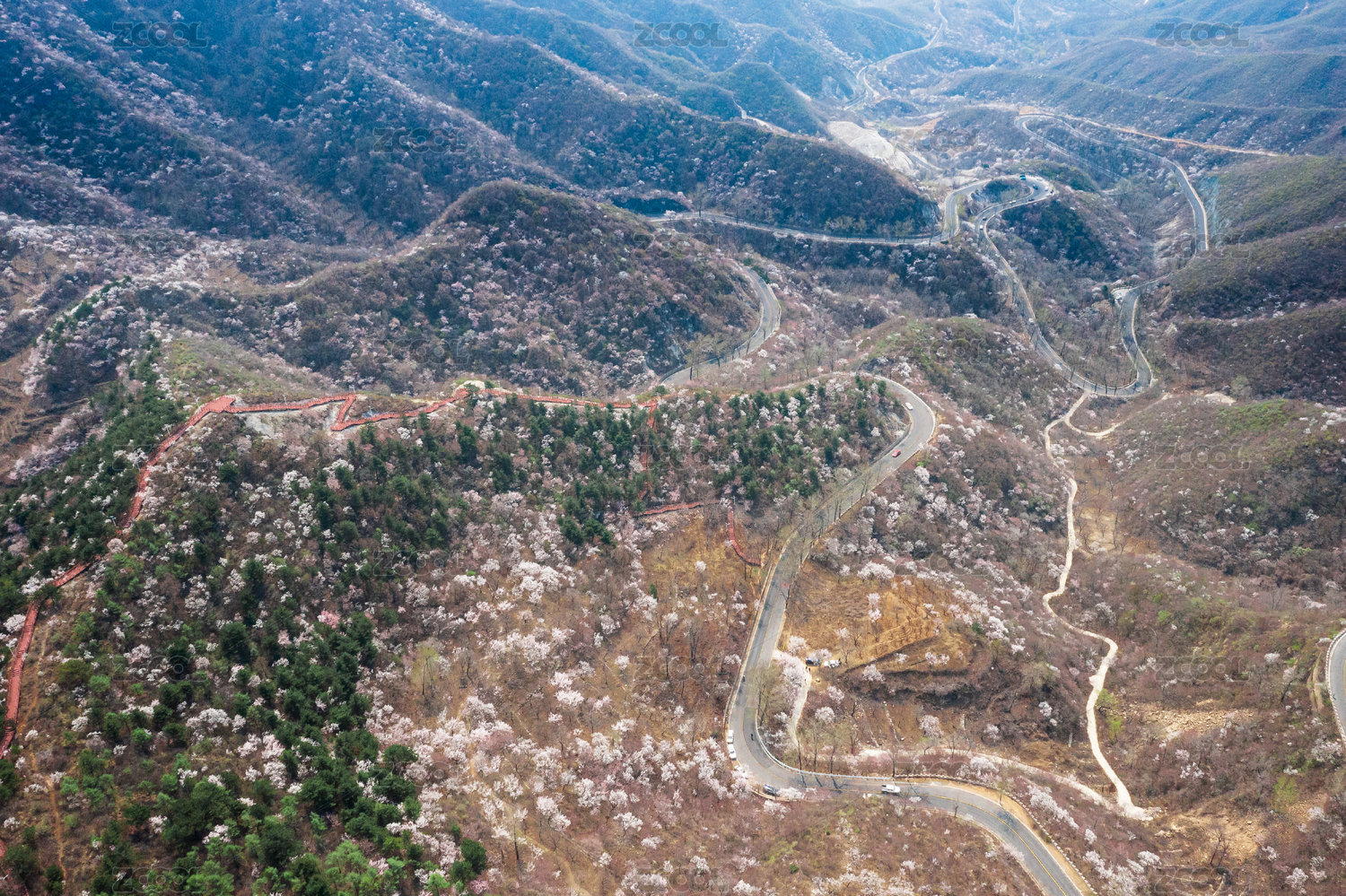 春季满山谷的山桃花