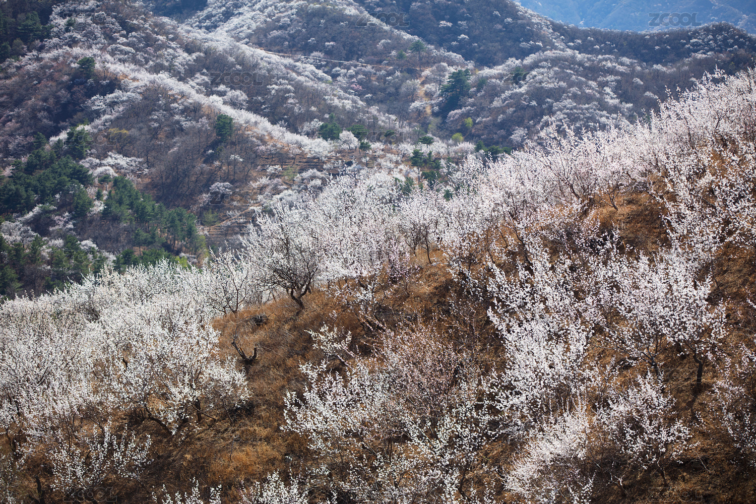 盛开的山桃花漫山遍野