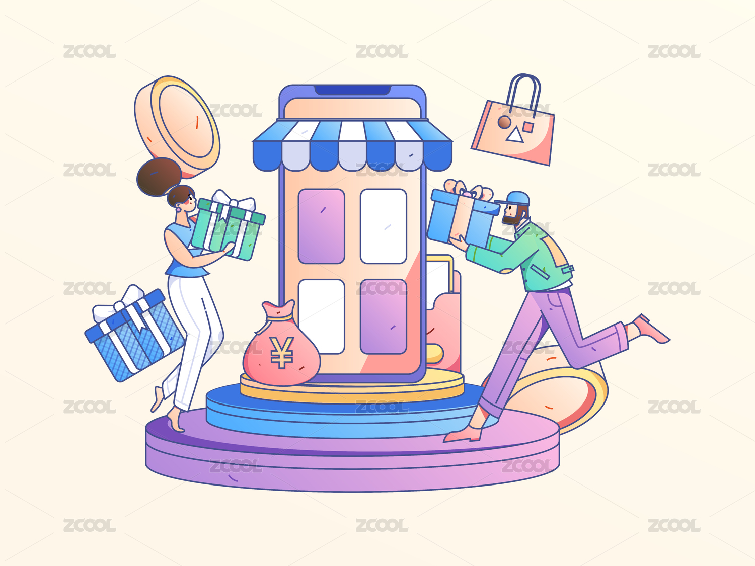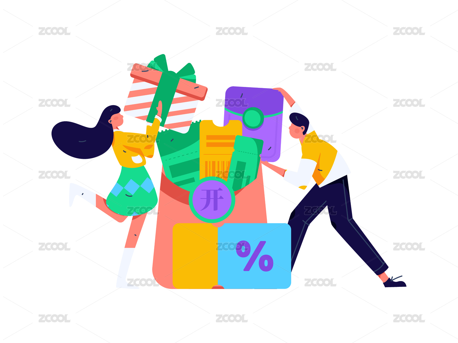 网购电商优惠券概念扁平矢量概念运营手绘插