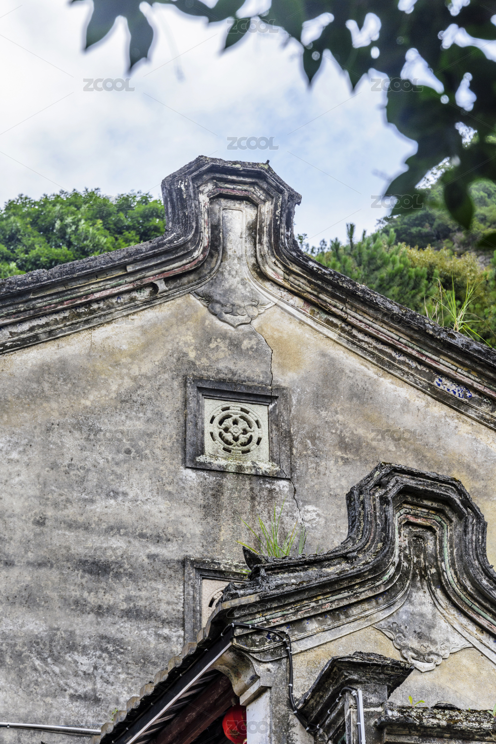 老房子的山墙局部特写