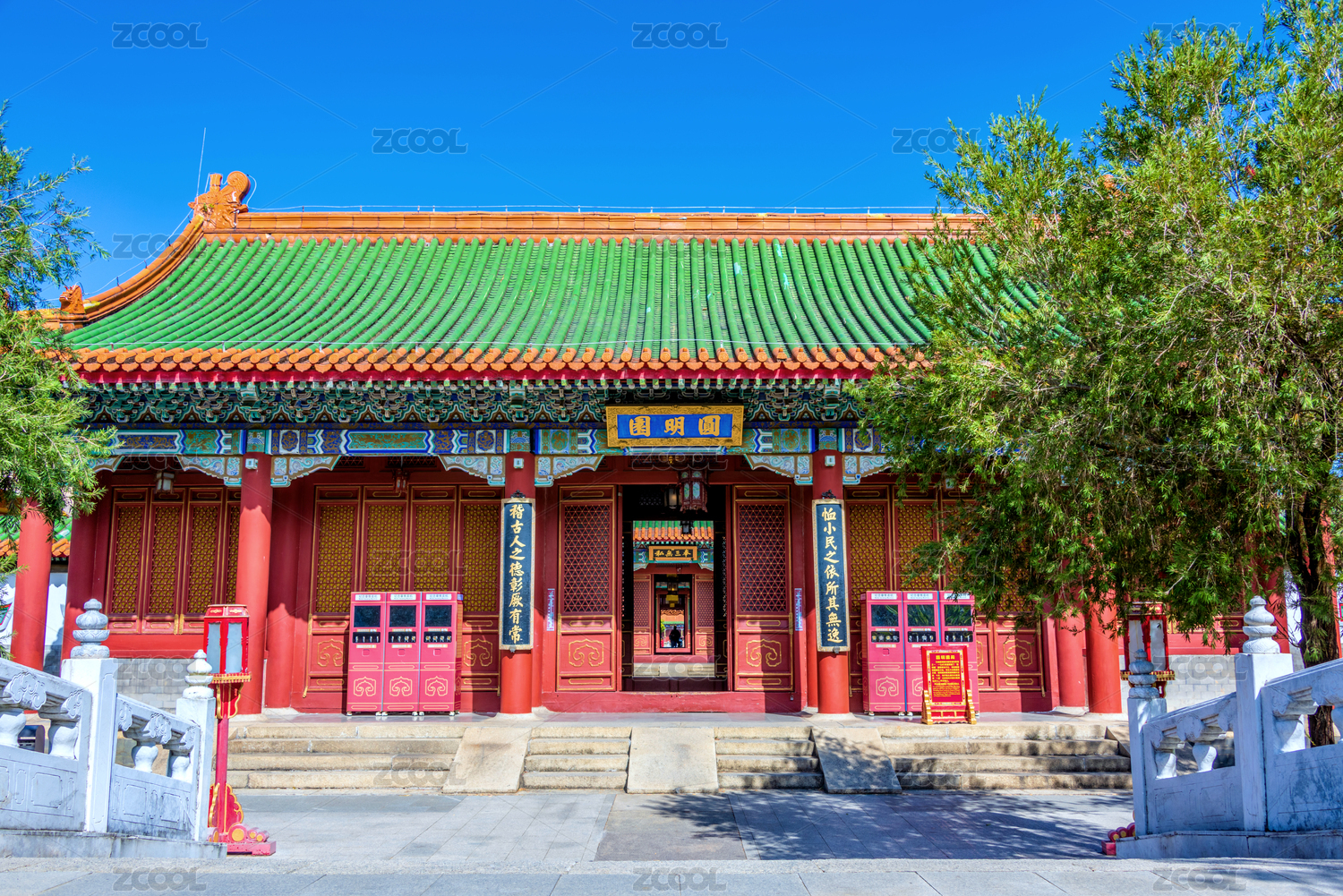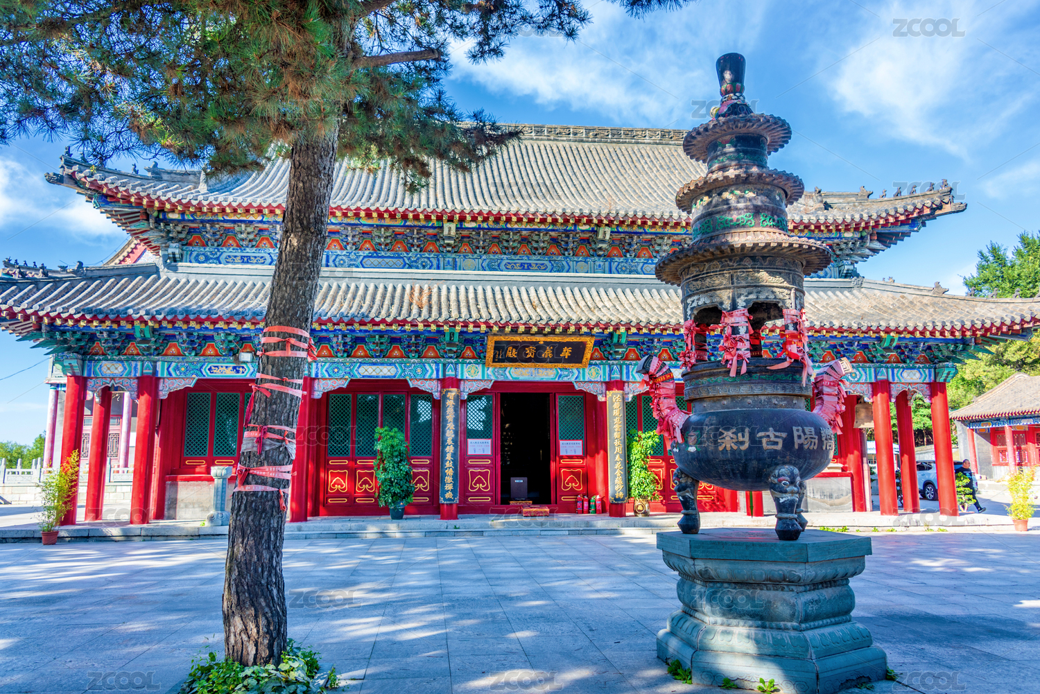 中国山东省青岛市崂山华严游览区华严寺三圣殿