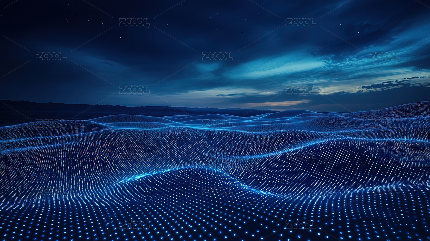 蓝色光点组成的数字山脉景观