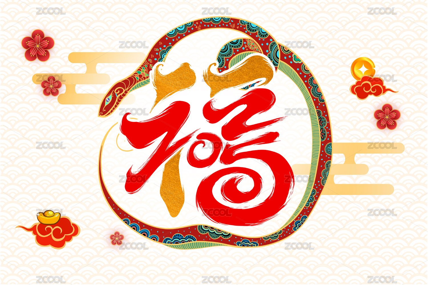 蛇年主题插画艺术剪纸图案logo徽章标志