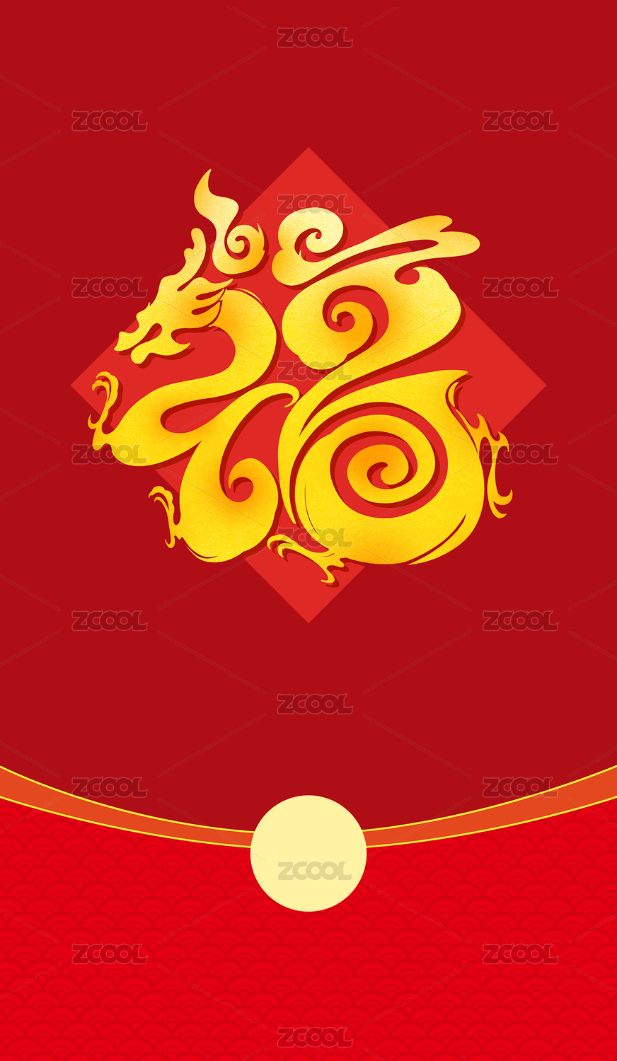 龙年福字云纹理纸质红包封面艺术字矢量插画
