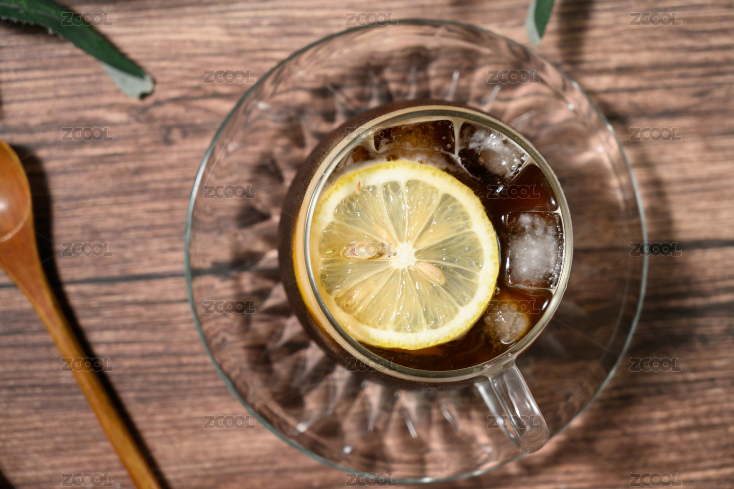 桌面上的杯子里的美味可口柠檬美式咖啡