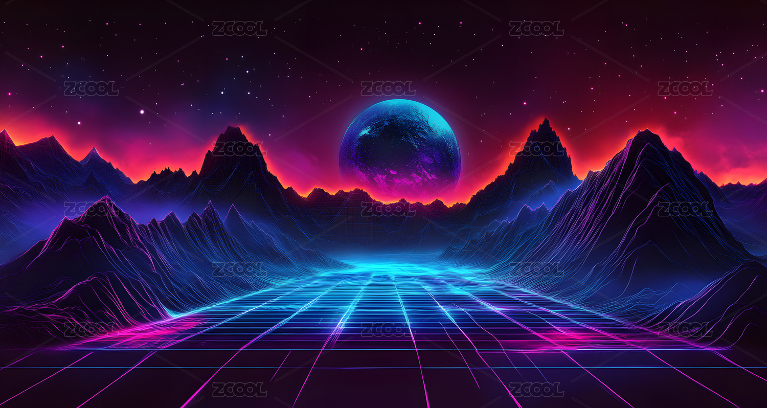 霓虹电子复古绚丽色彩抽象背景