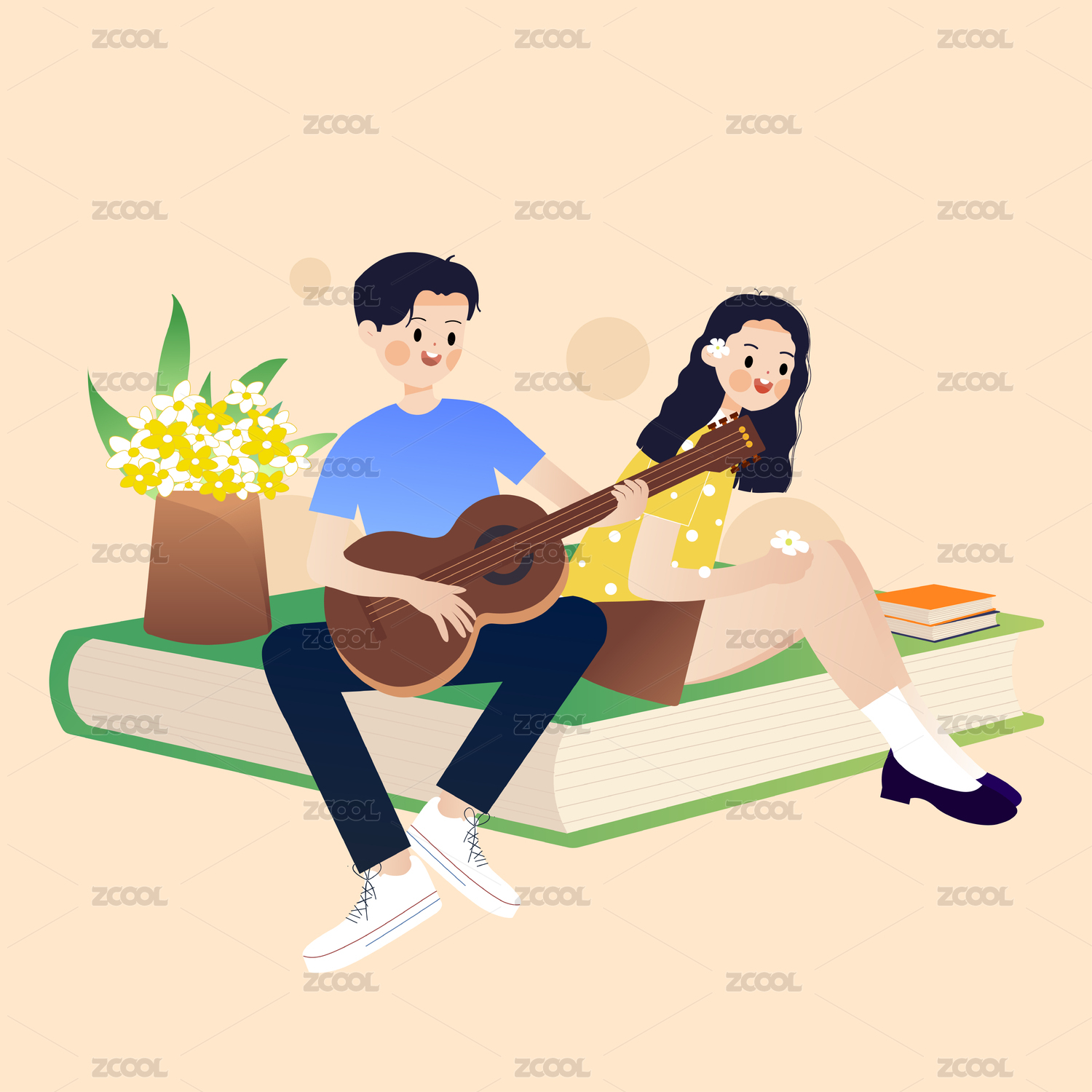 在大学里认识交往谈恋爱的男孩女孩矢量插画