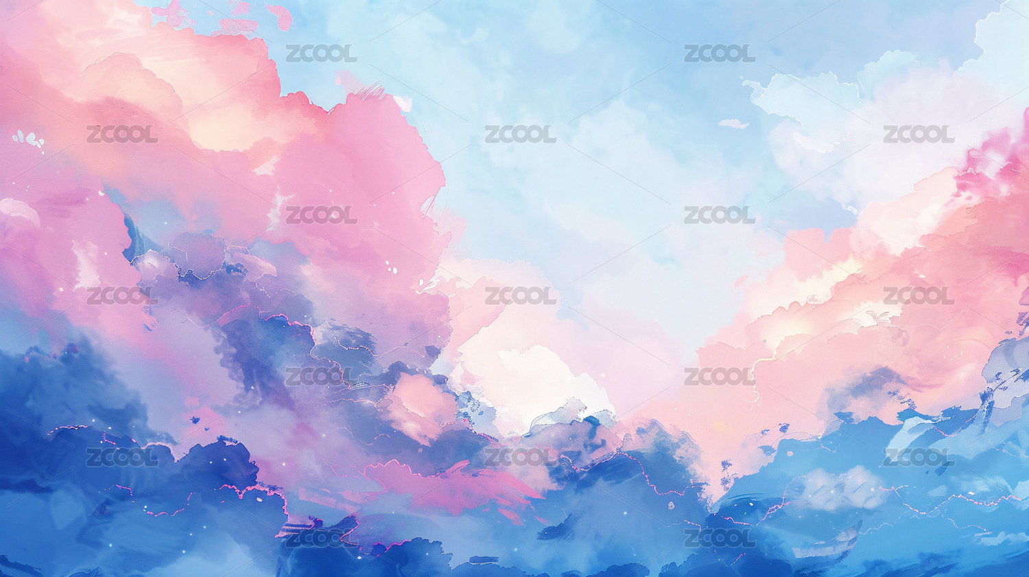 水彩风格抽象天空彩云PPT海报主视觉背景