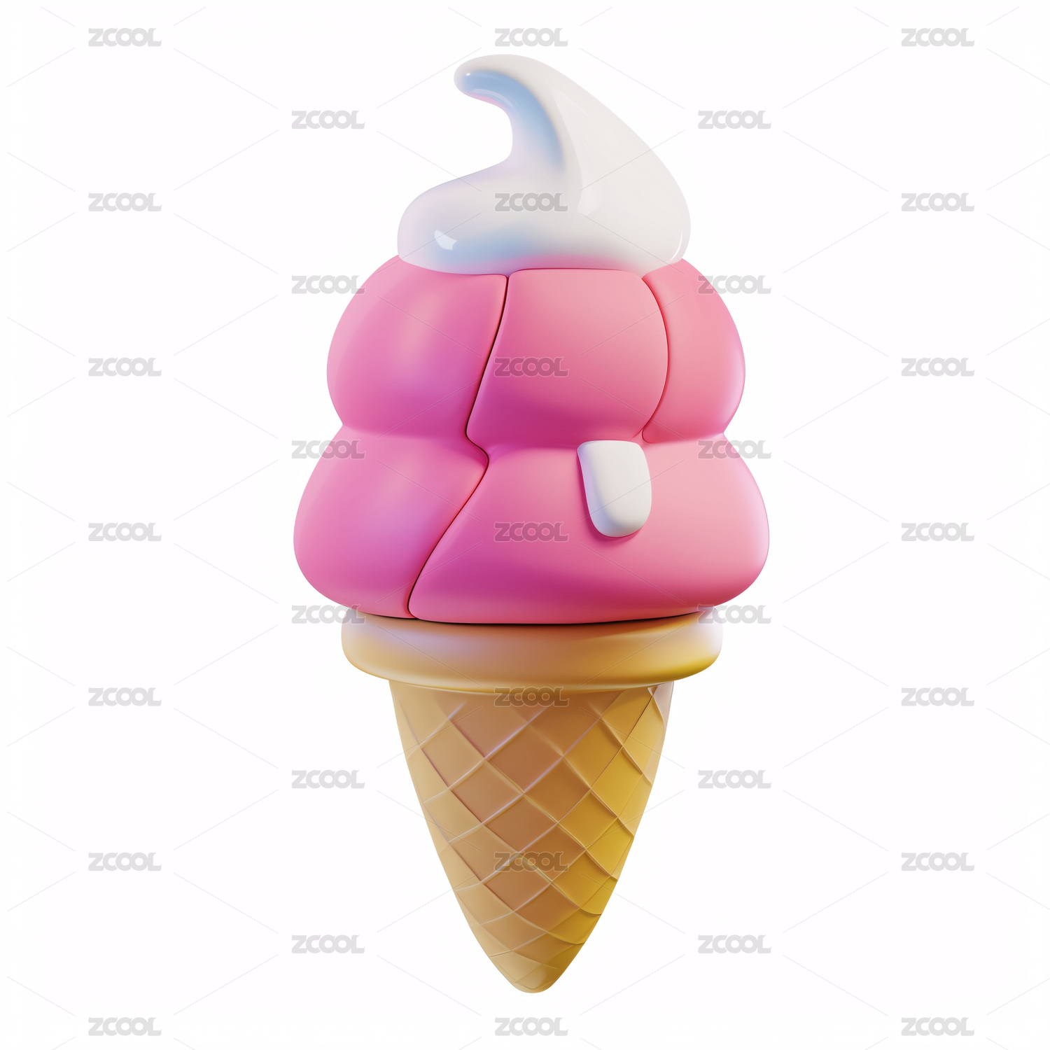 冰淇淋,甜点,奶油,食物,美味,插图,夏天,三维,甜筒,设计新鲜