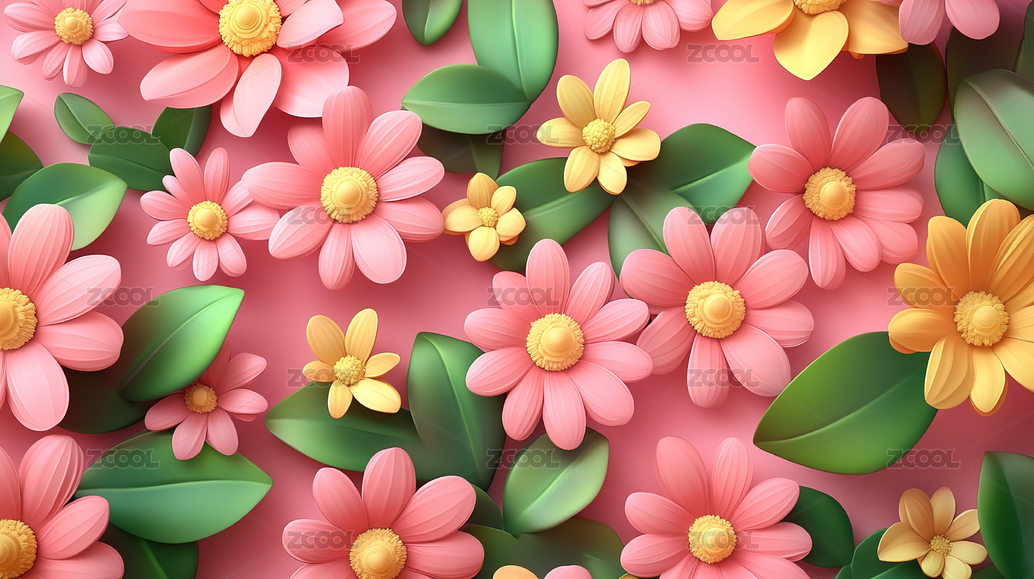 3D渲染的各种剪影风格花卉,春天剪纸艺术