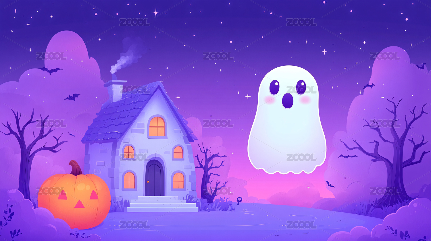 欢乐万圣节幽灵南瓜灯派对梦幻节日插画海报