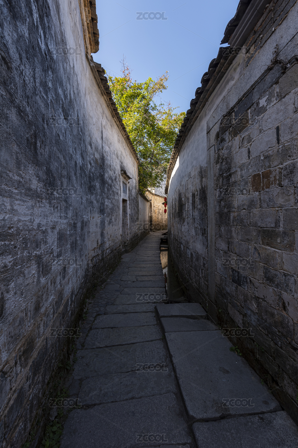 浙江兰溪诸葛八卦村 阳光下的幽深巷道