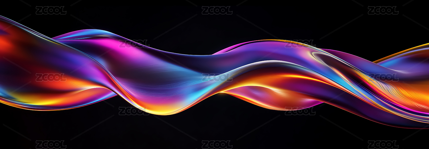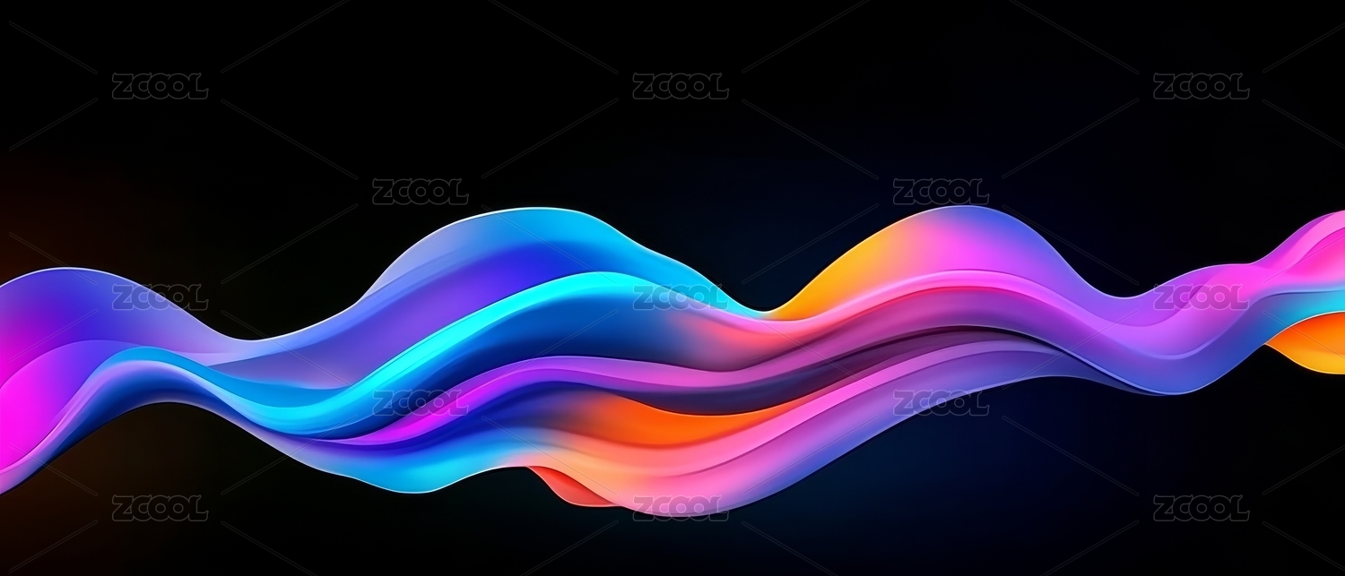 黑色背景下的紫色渐变曲线波浪抽象科技背景