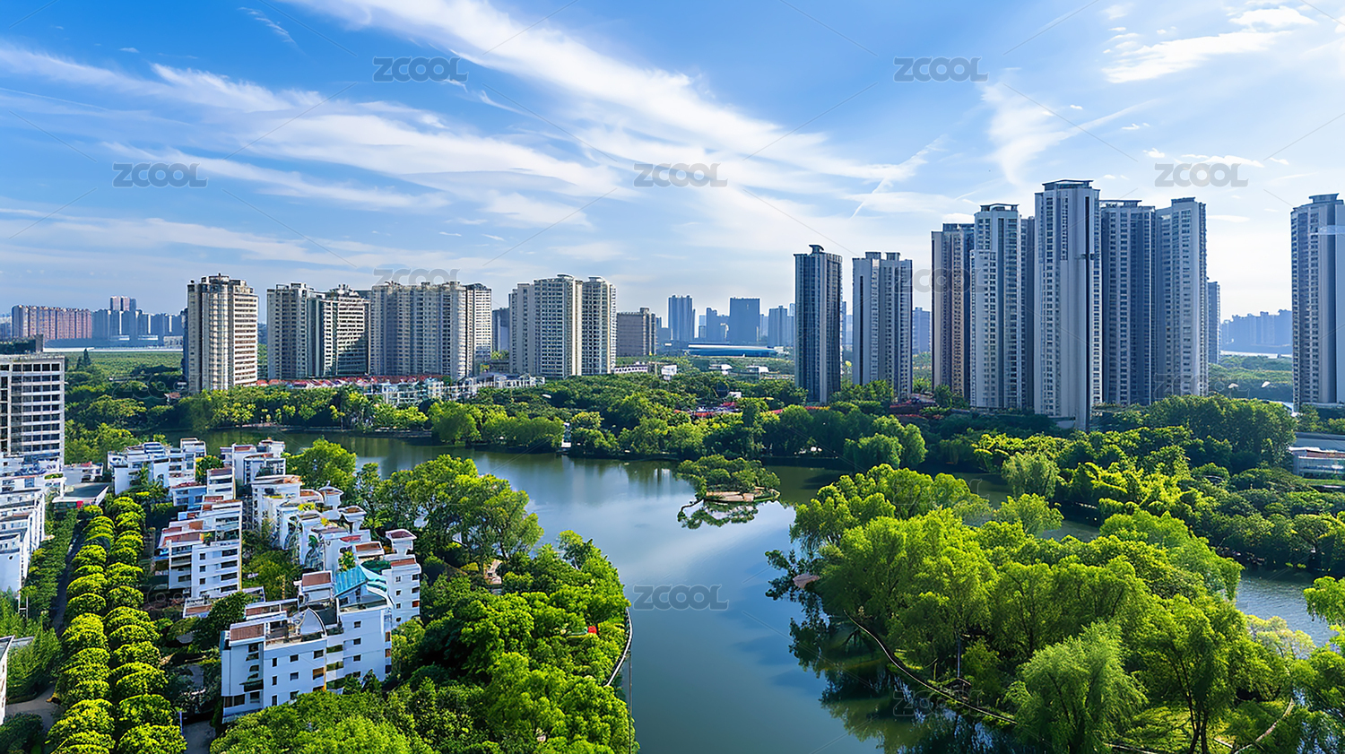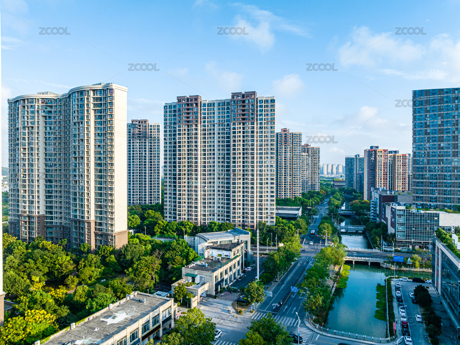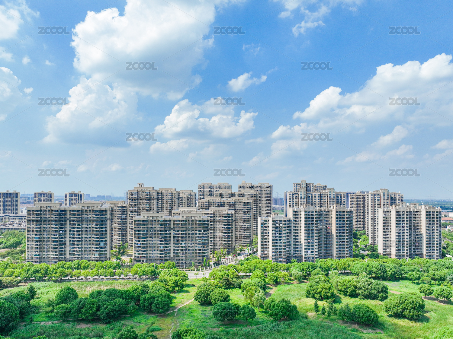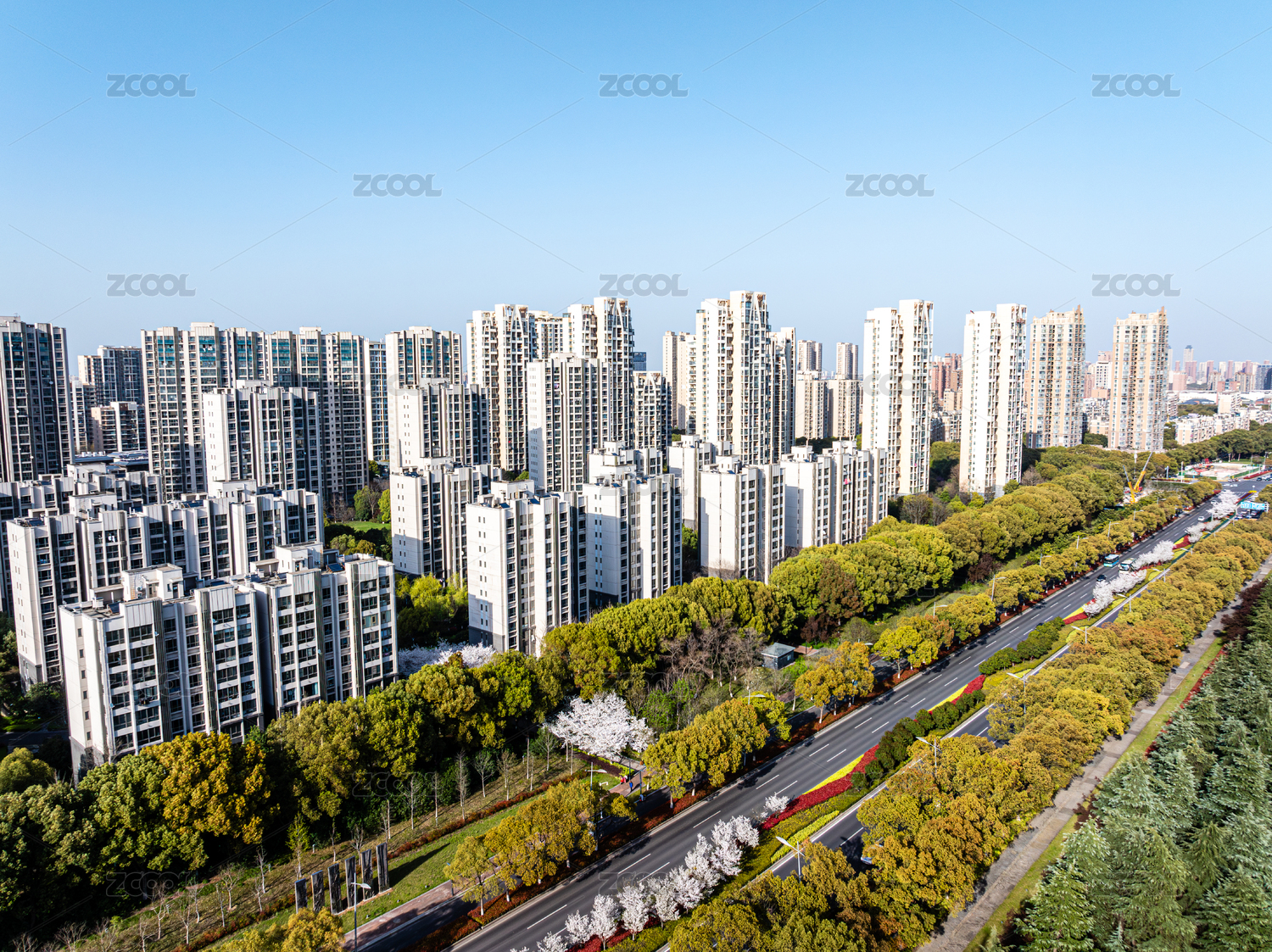 航拍中国江苏省南京蓝天下高楼林立的现代居住区