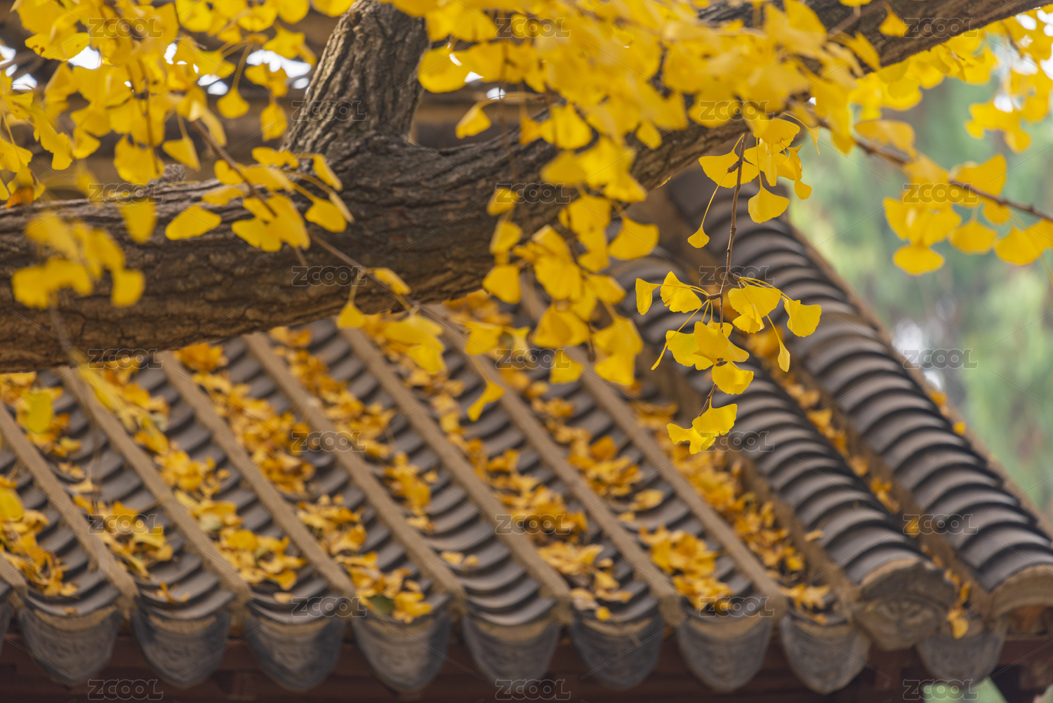 江苏省盐城市大纵湖银杏叶园林古建筑环境